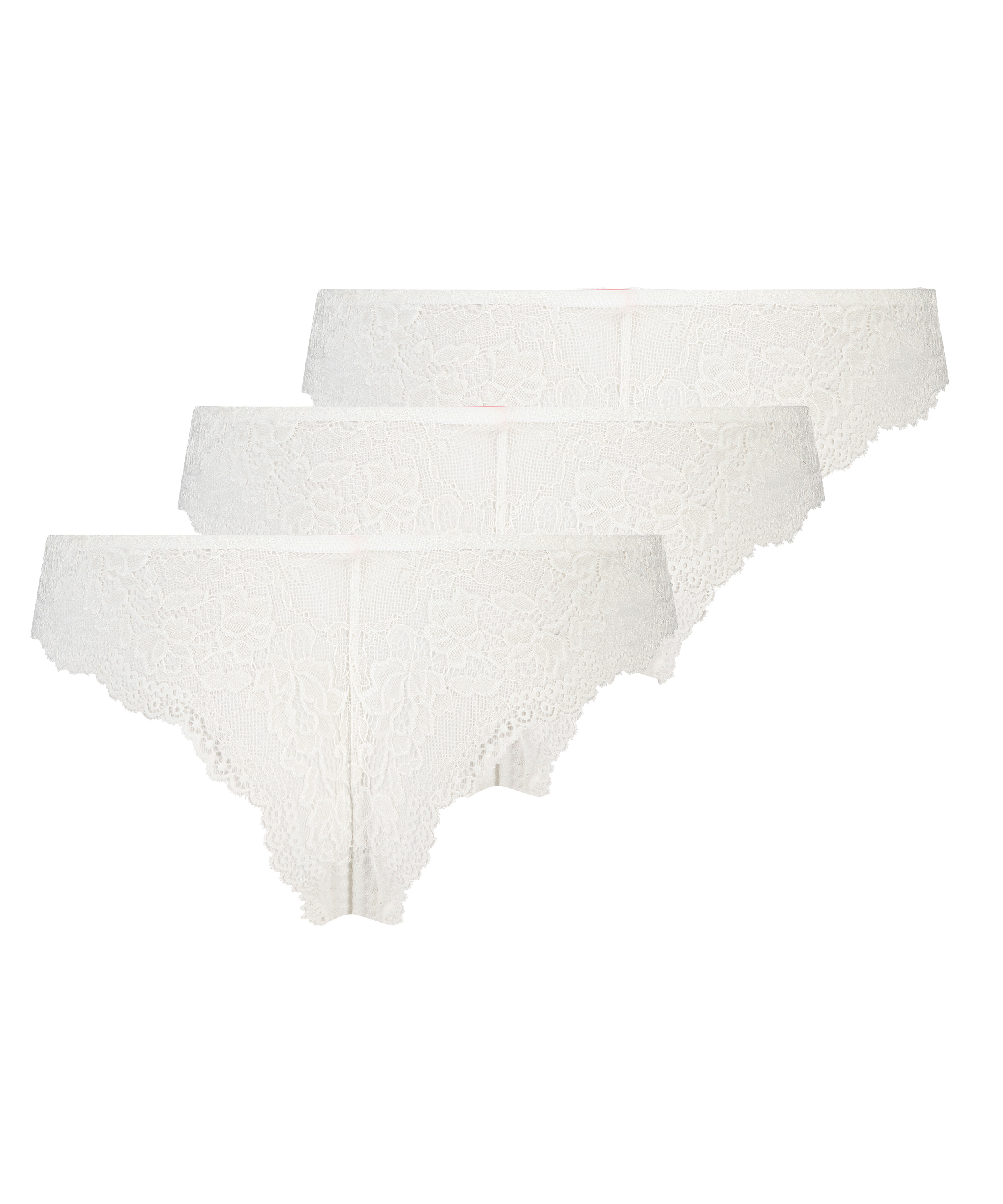 Fühle Dich sexy in diesen Brazilians! Sie sind komplett mit Spitze verarbeitet und haben als zusätzliches Detail eine kleine Schleife auf der Vorderseite. Praktisch im 3er-Pack, damit Du jeden Tag fabelhaft aussiehst.
