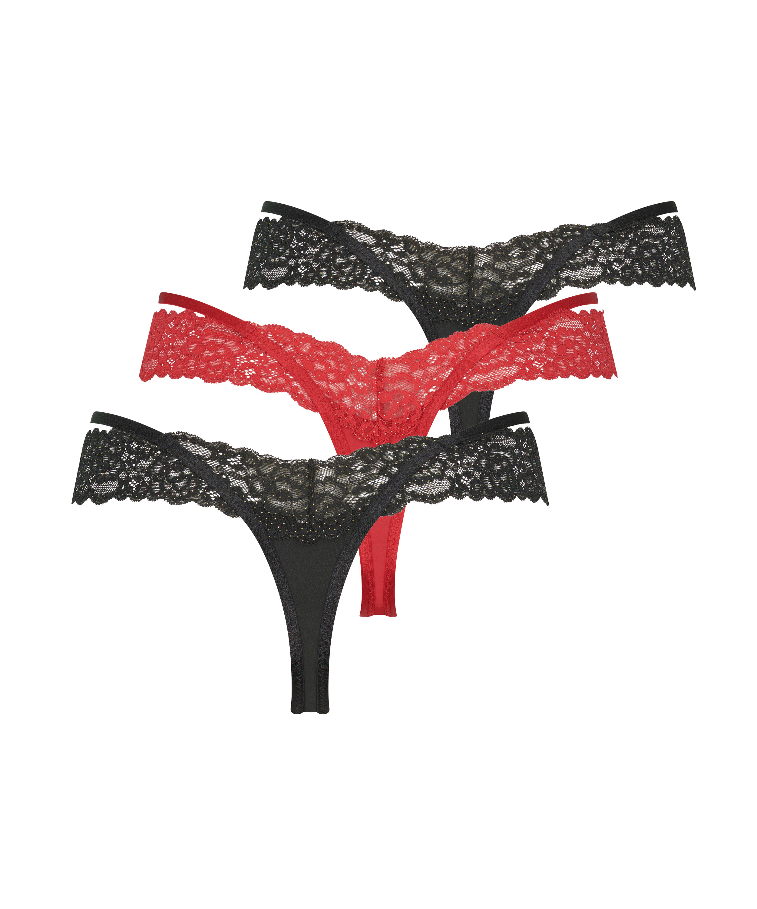 Mit diesem tollen 3-Paar-Pack kannst du nichts falsch machen. Mit Spitzendetails und einem Spitzenband, um den romantischen Look zu unterstreichen. Verziert mit einer Schleife vorne und Riemchendetails an den Seiten. Diese Strings lassen sich perfekt mit einem BH kombinieren, um viele verschiedene Sets zusammenzustellen.