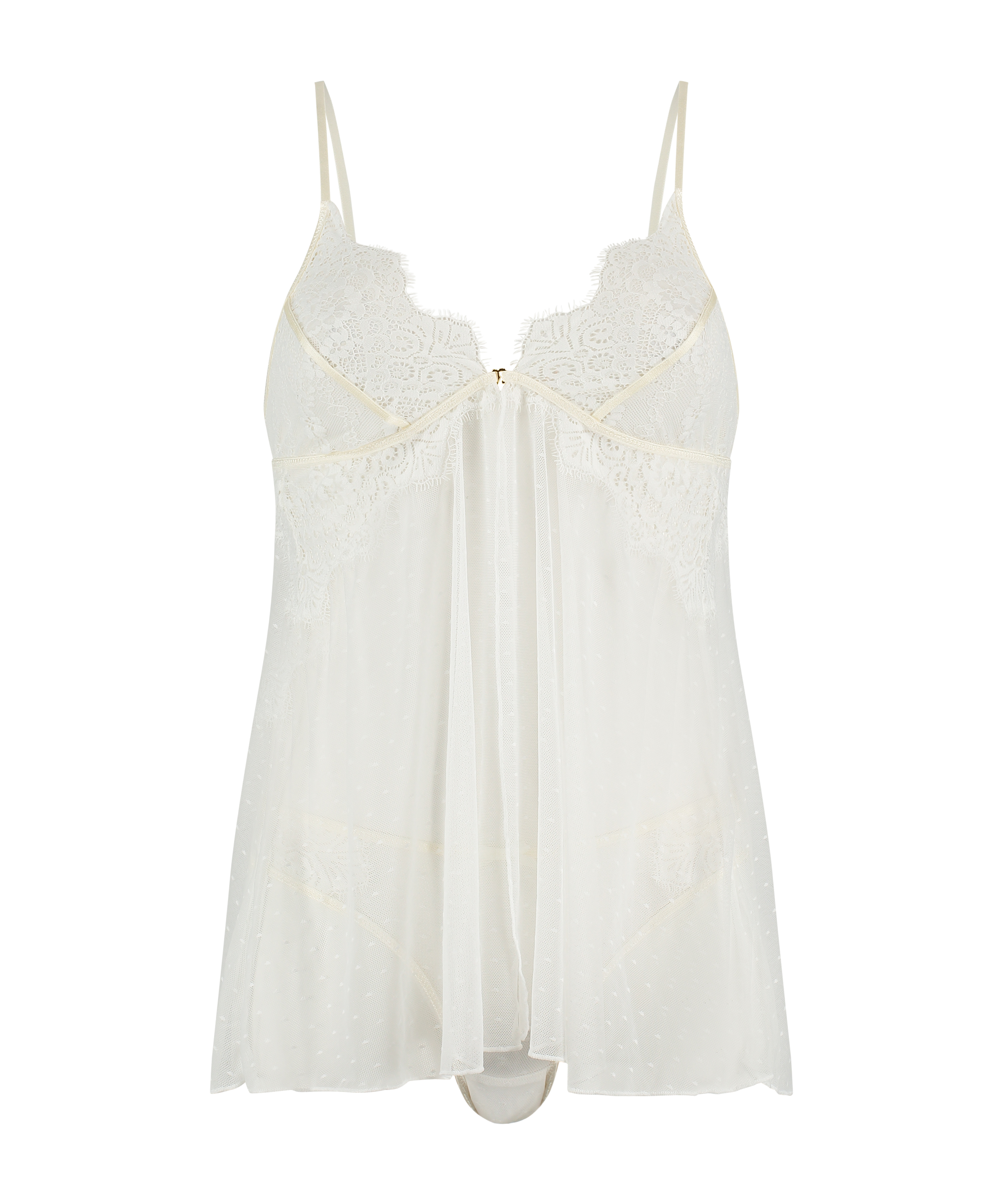 Dieses Babydoll ist genau das, was du suchst! Mit Allover-Spitze und semitransparentem Look. Die Körbchen sind ebenfalls mit Spitze und Riemchendetails verziert. Durch den Vorderverschluss lässt es sich einfach an- und ausziehen. Und das Beste daran ist: Es kommt mit dem passenden Slip!