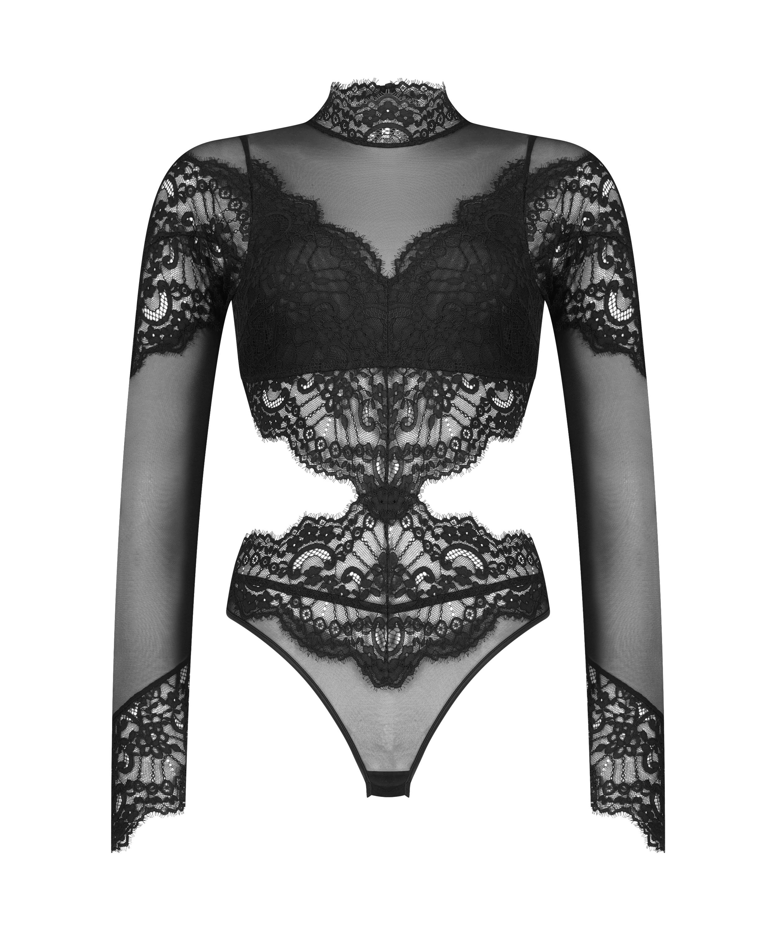Fühle dich elegant in diesem schönen Body! Er begeistert mit einer offenen Rückseite, Meshdetails und Spitze für einen atemberaubenden Look. Kombiniere ihn mit deinen Lieblingsartikeln. Modell aus unserer Noir-Kollektion.