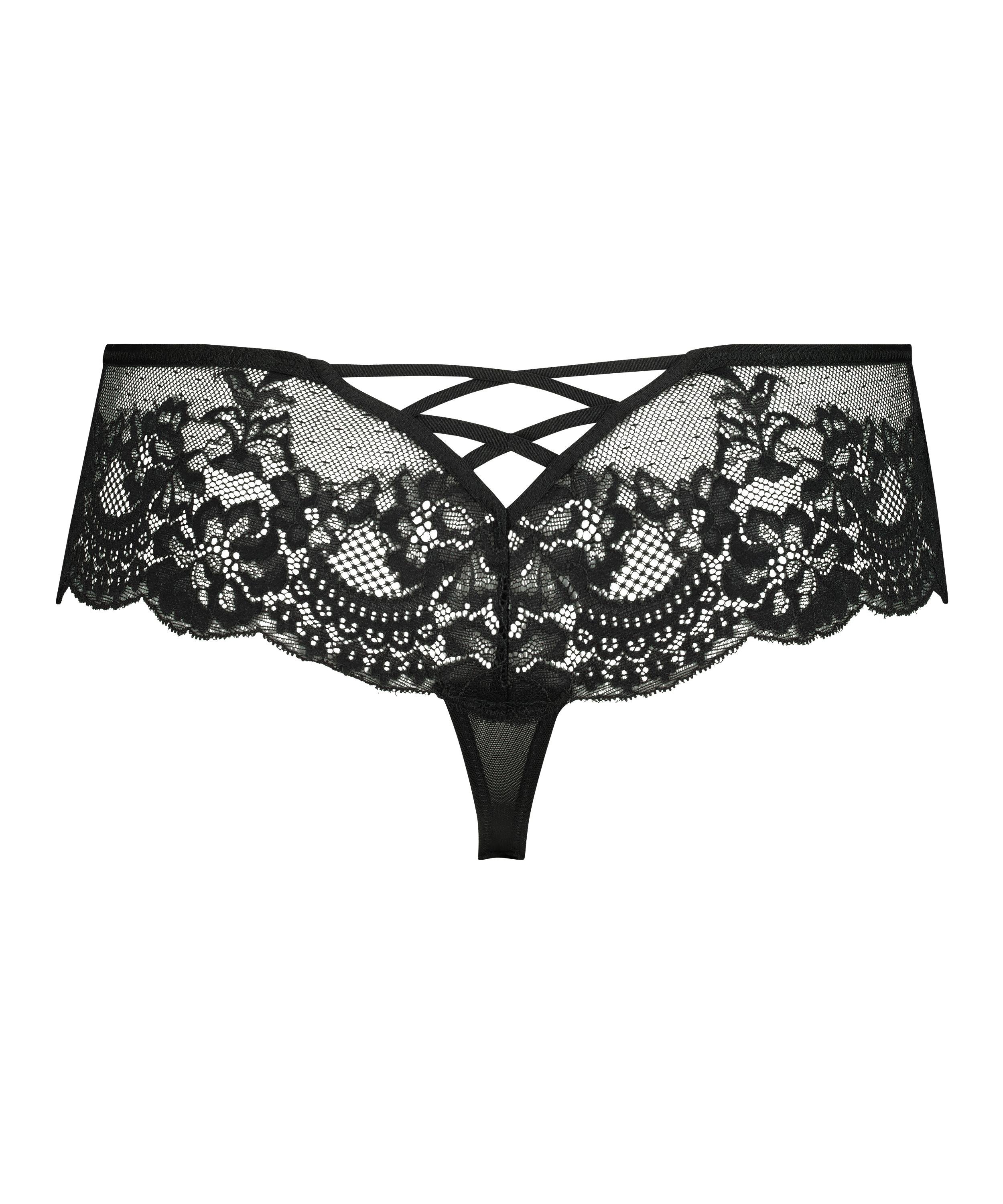 Einfach sexy, dieser feminine Boxerstring! Der Slip ist mit einem subtil schimmernden Mikrofaserstoff ausgeführt, der ihm einen glamourösen Look verleiht, und ist mit luxuriöser Spitze veredelt. Die Rückseite ist zudem mit einer elastischen V-Öffnung vers