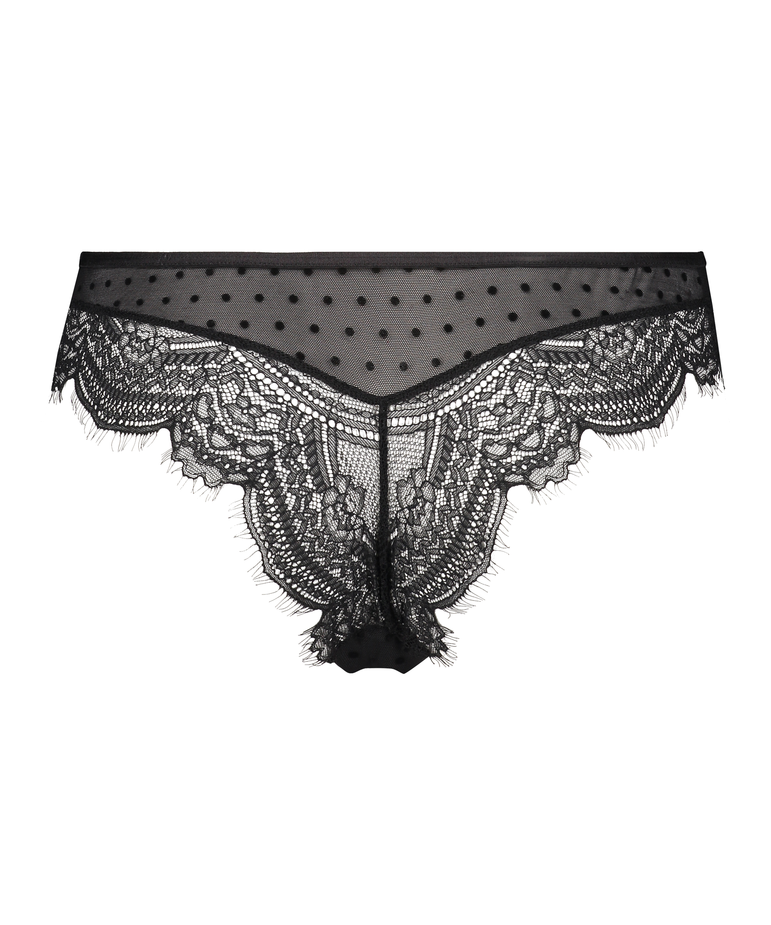 Dieser Brazilian ist ein echtes Must-have! Der Slip enthält schöne Details aus Spitze und Cut-out-Details. Außerdem gibt es noch ein tolles Punktmuster im Stoff. Kombiniere ihn mit einem passenden BH oder einem Bralette.