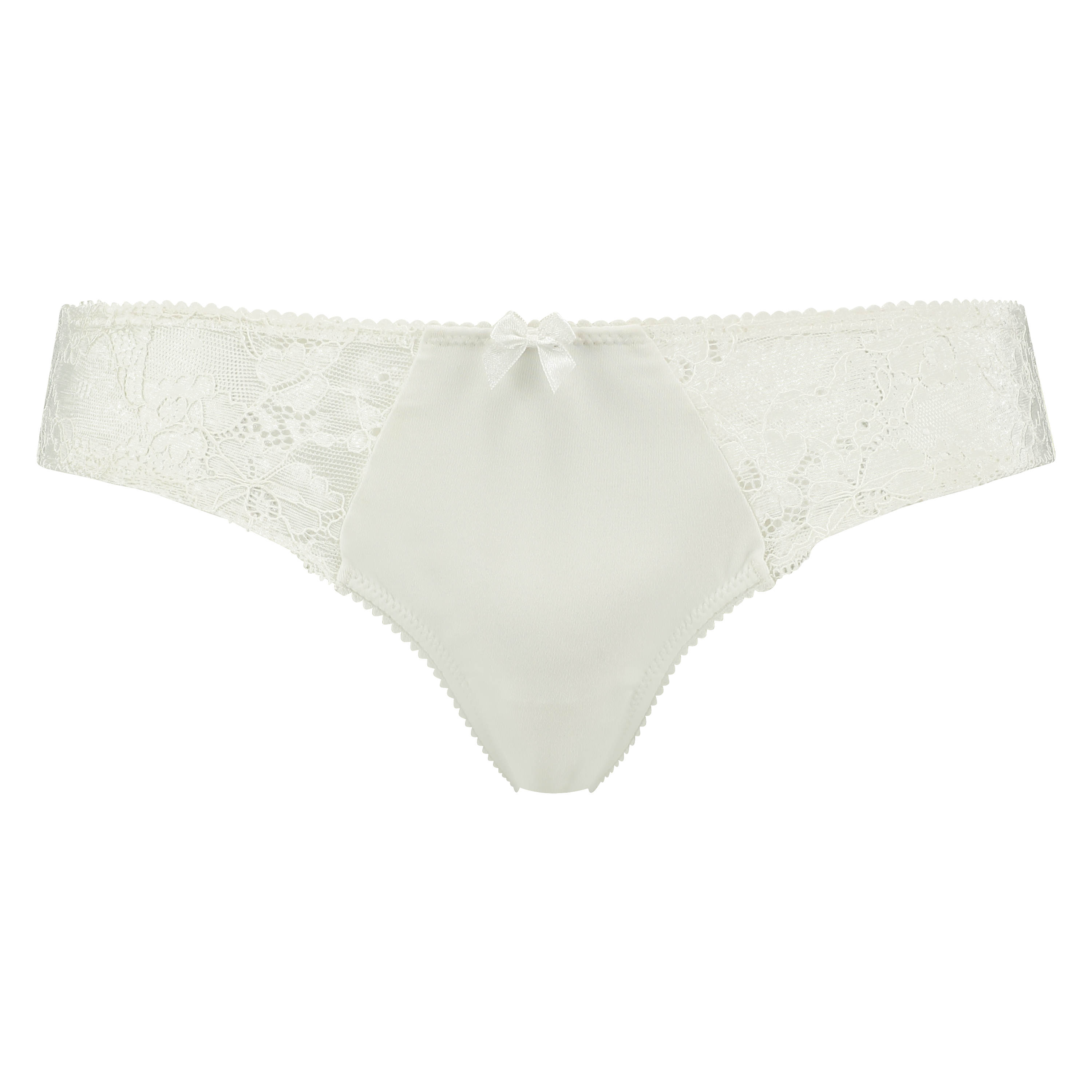 Wunderschöne Brazilian. Die Vorderseite ist mit einem Schleifendetail und mit Spitze versehen. Die Rückseite ist aus einem semitransparenten Stoff und mit einer Muschelkante besetzt.