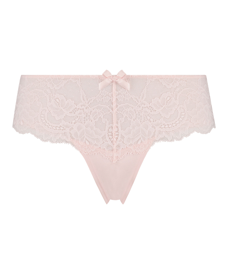 Dieser Brazilian ist ein echtes Must-have! Dieser Slip hat Spitzendetails hinten und eine Schleife vorne. Kombinieren Sie ihn mit dem passenden BH zu einem kompletten Lingerie-Set.