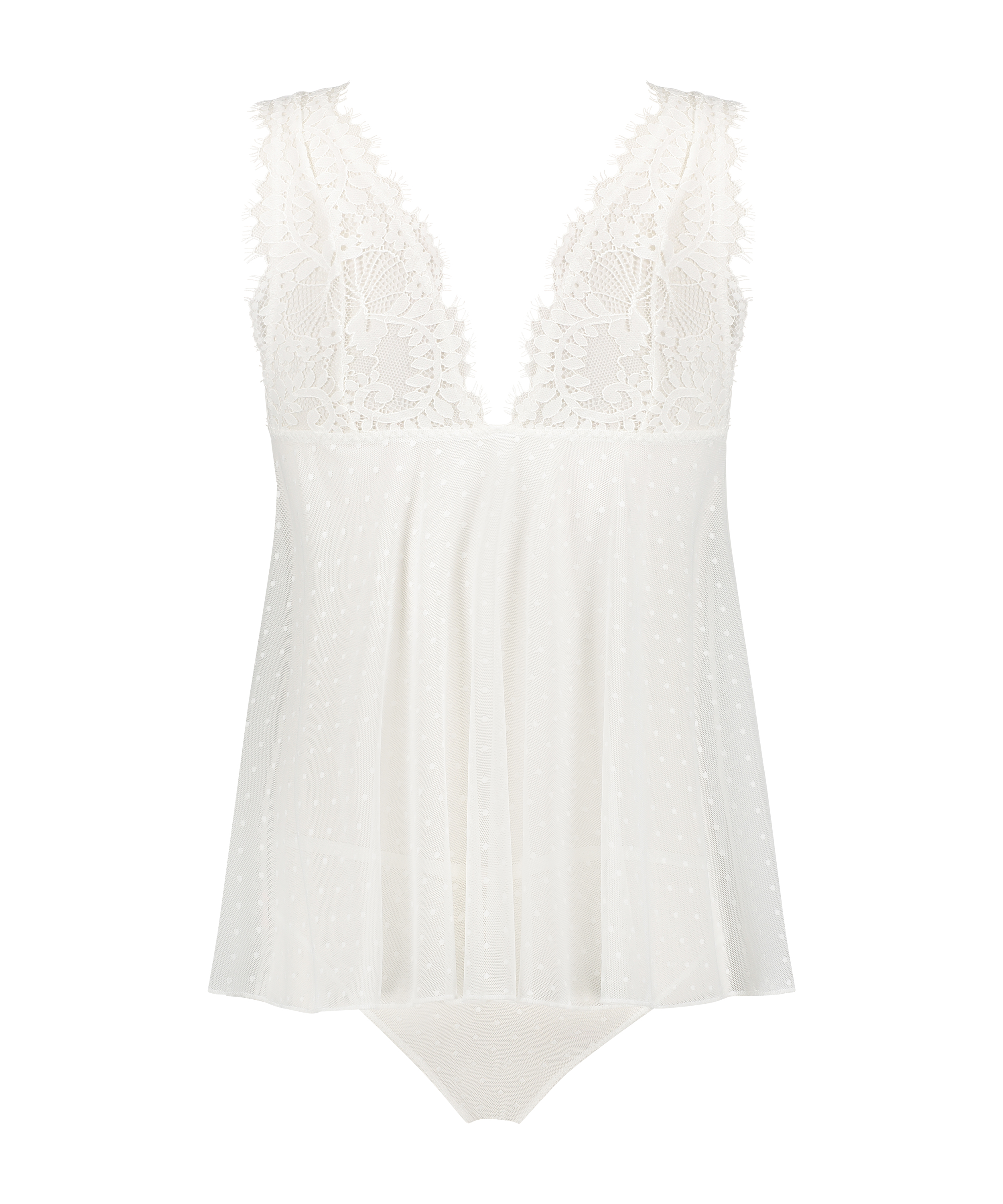 Suchen Sie ein Camiset, das zugleich elegant und bequem ist? Dann ist dieses Camiset perfekt! Das Oberteil hat einen V-Ausschnitt und Details aus Spitze. Der Slip ist größtenteils aus Netzstoff hergestellt und zeigt ein Motiv.