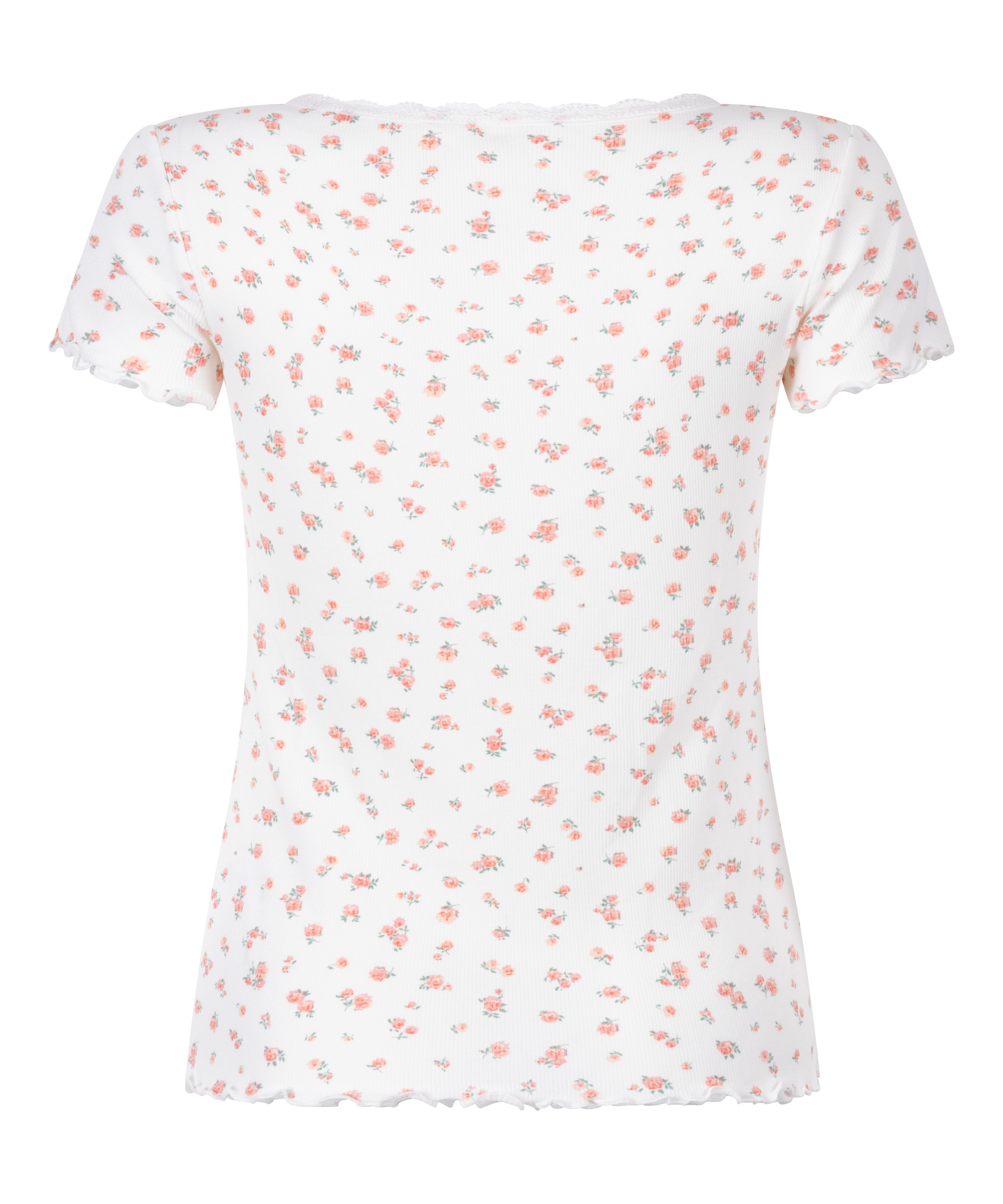 Geripptes Kurzarm-Top mit Spitze - Weiß