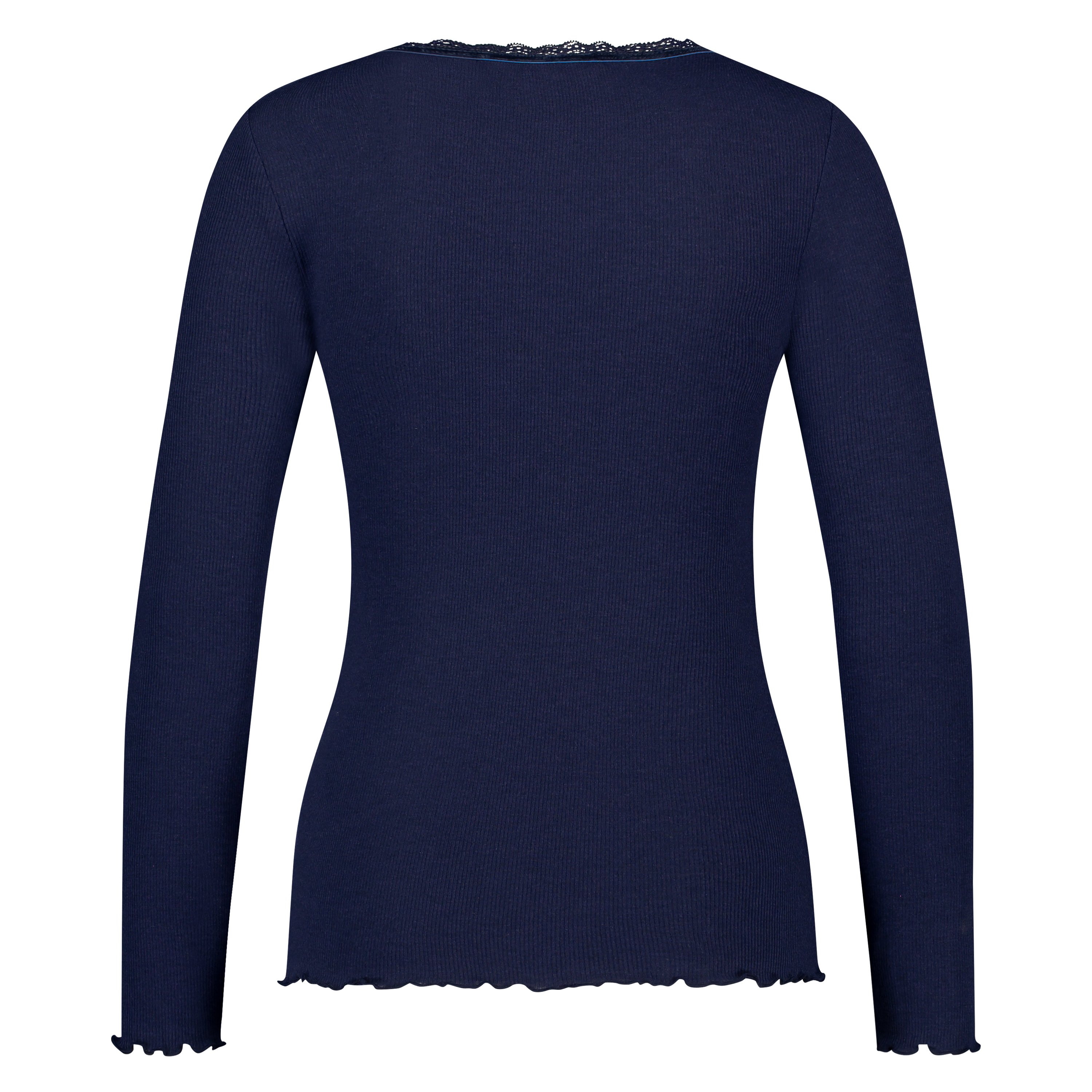 Langarm-Top, gerippt R-neck - Blau