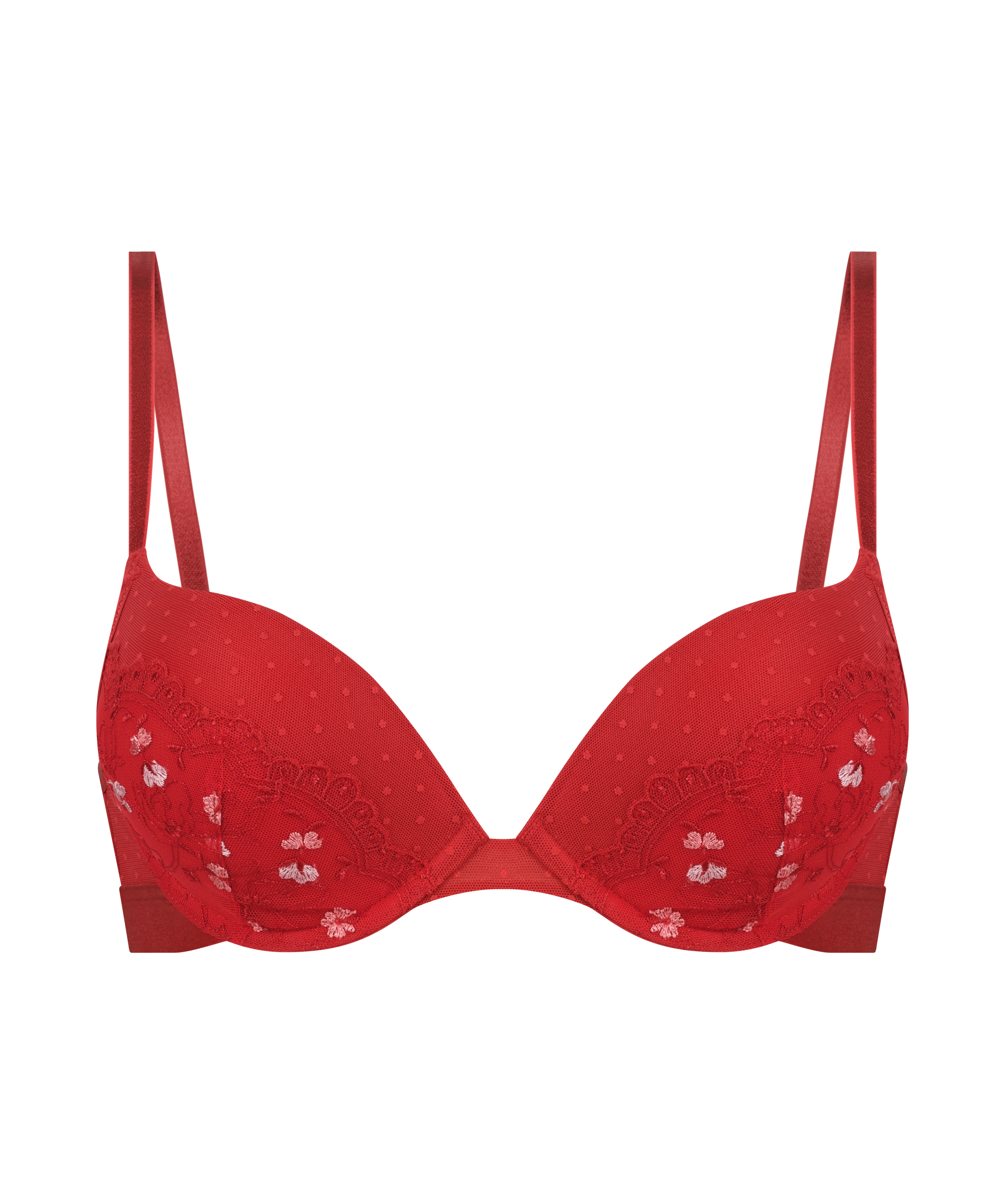 Sei sexy mit diesem schönen Maximizer-BH! Mit viel romantischer Spitze und süßen Allover-Stickereien . Finde den dazu passenden Slip, um das Set zu vervollständigen!