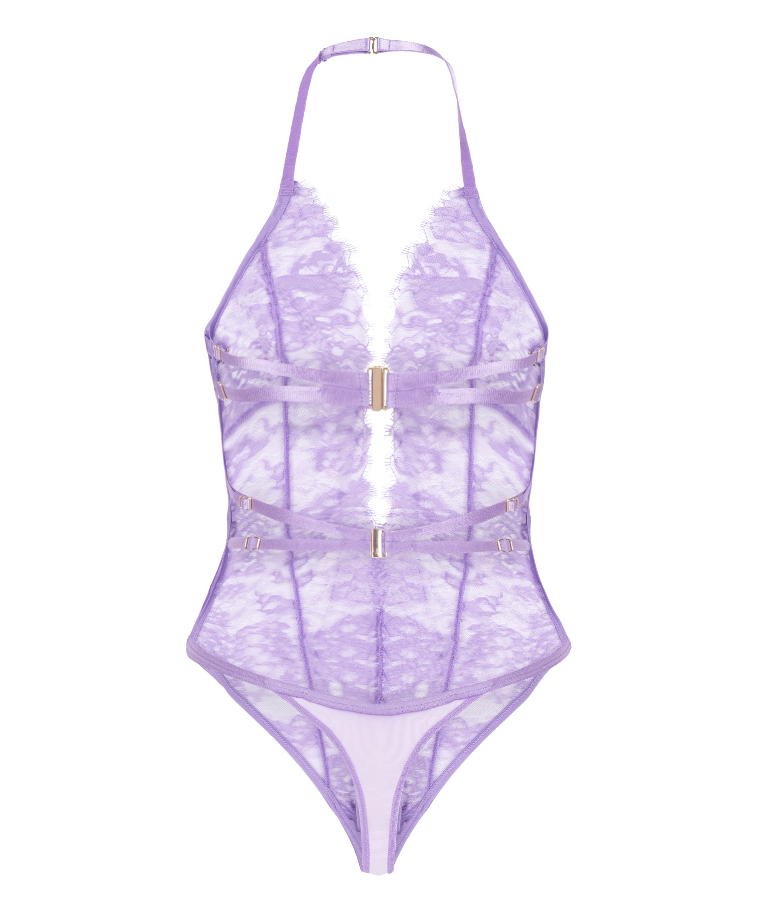 Dieser Body aus reiner Spitze ist aus jedem Blickwinkel ein Hingucker. Ganz aus Spitze gefertigt, schmiegt er sich wie eine zweite Haut an Ihre Kurven. Ein Ring an der Vorderseite zieht die Blicke auf sich und setzt einen funkelnden Akzent. Teil unserer Private-Kollektion.