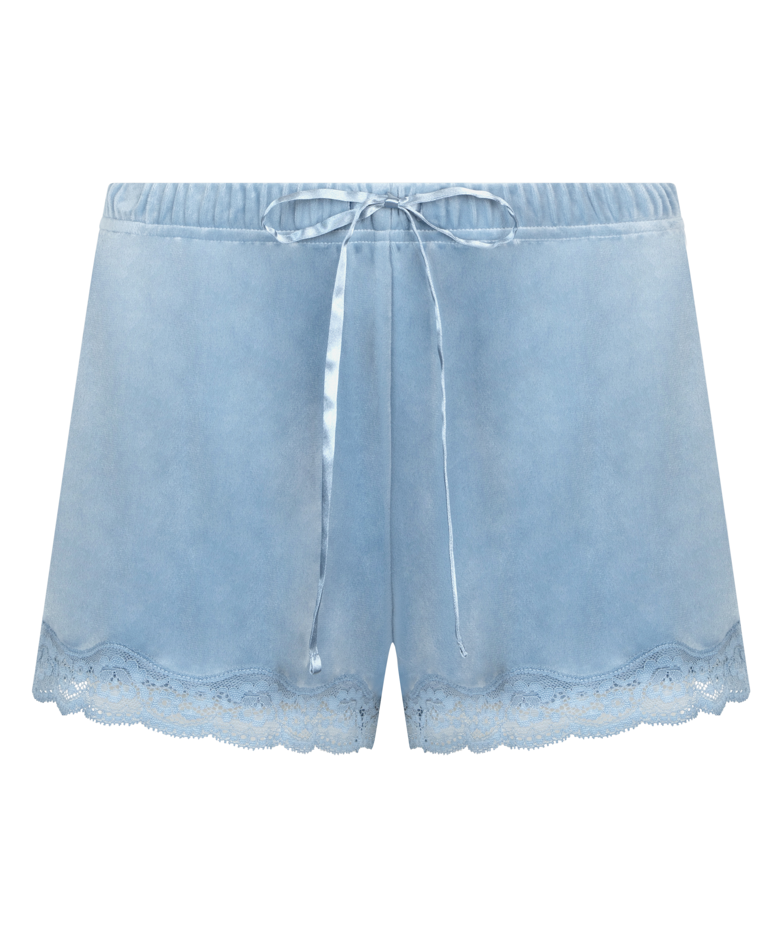 Shorts aus Velours mit Spitze - Blau
