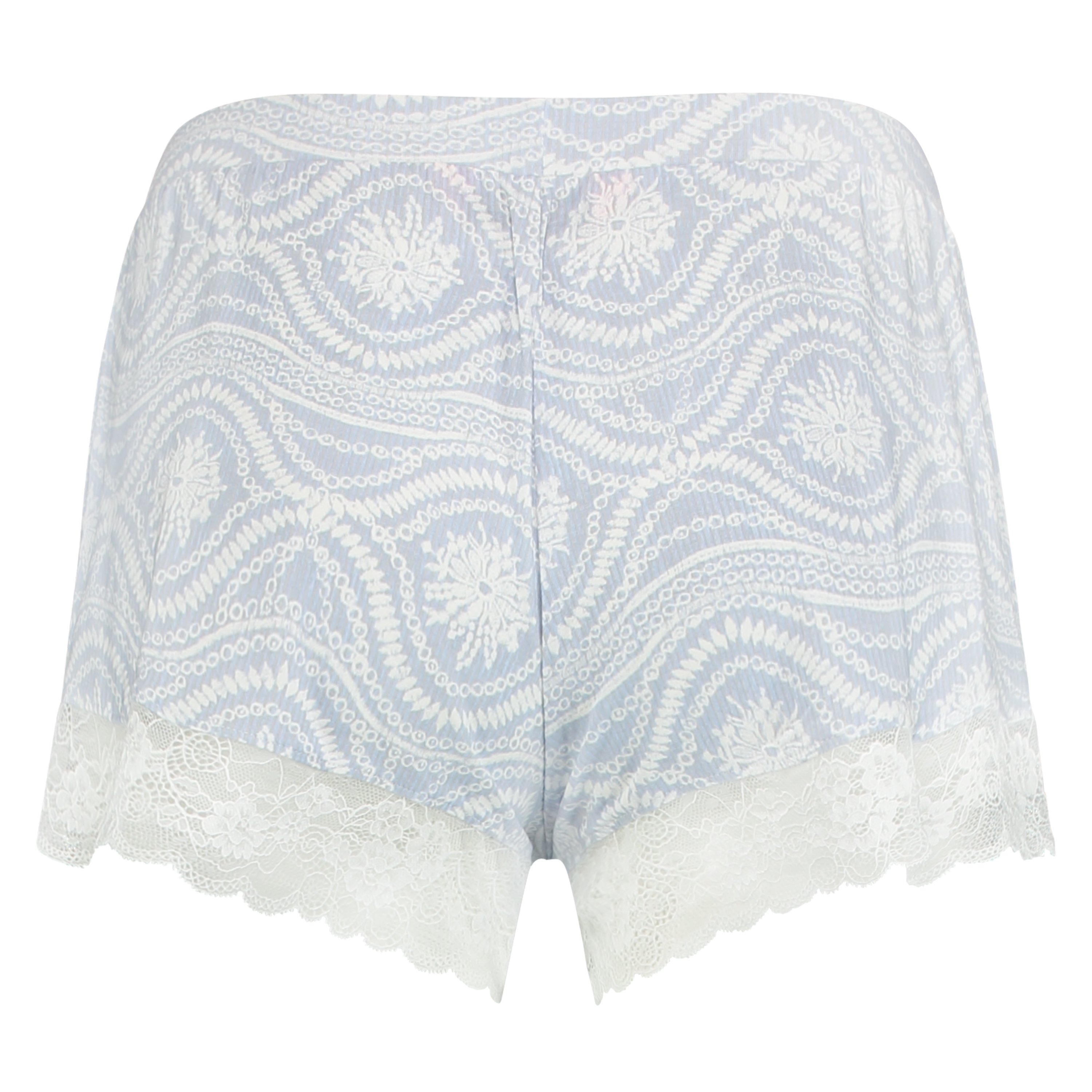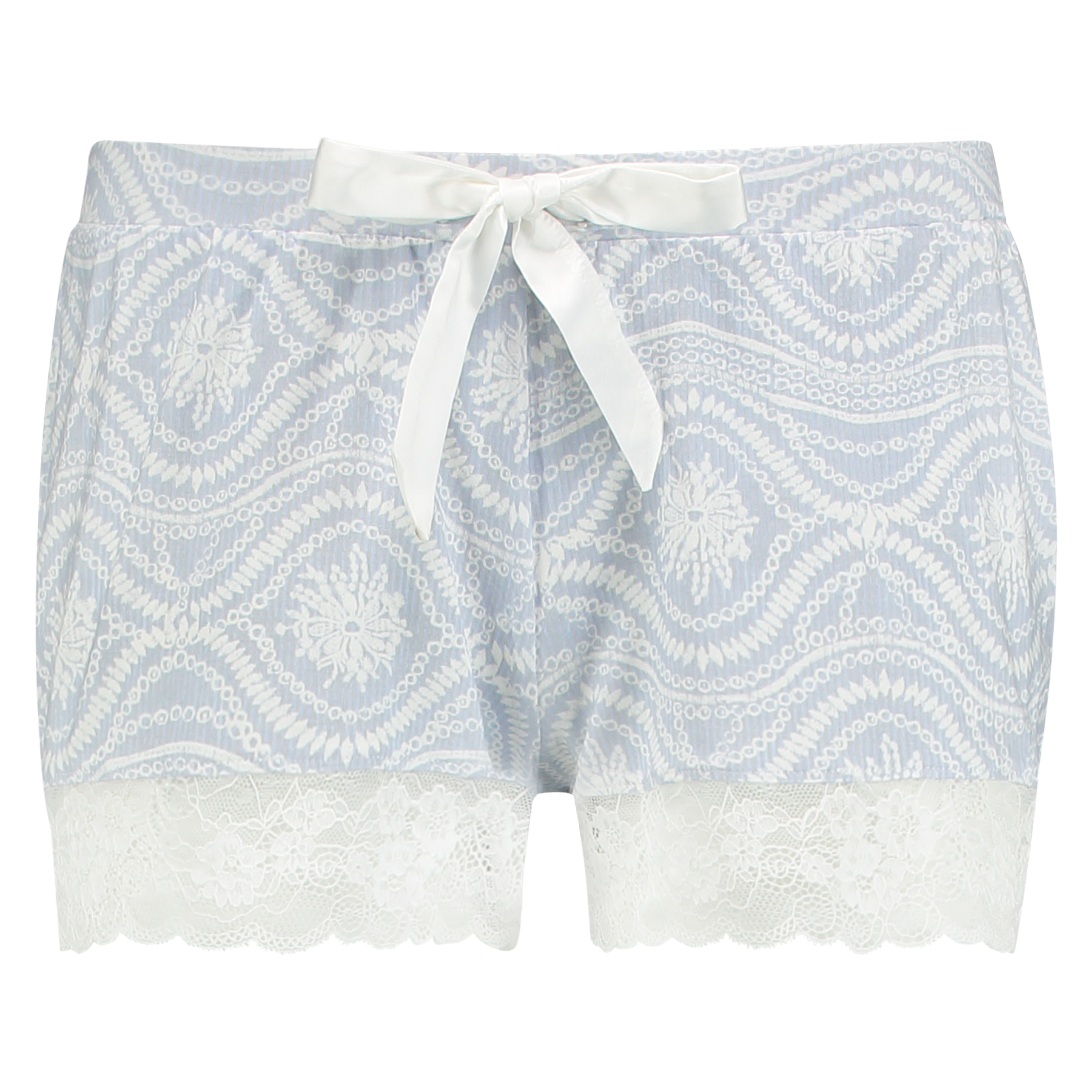 Niedliche Pyjamashorts, in denen man umso lieber ins Bett geht. Die Shorts sind aus einem geschmeidig fallenden Material und tragen sich darum sehr angenehm. Die Shorts sind am Saum mit einem hübschen Spitzenrand und auf der Vorderseite mit einer Satinschleife versehen.