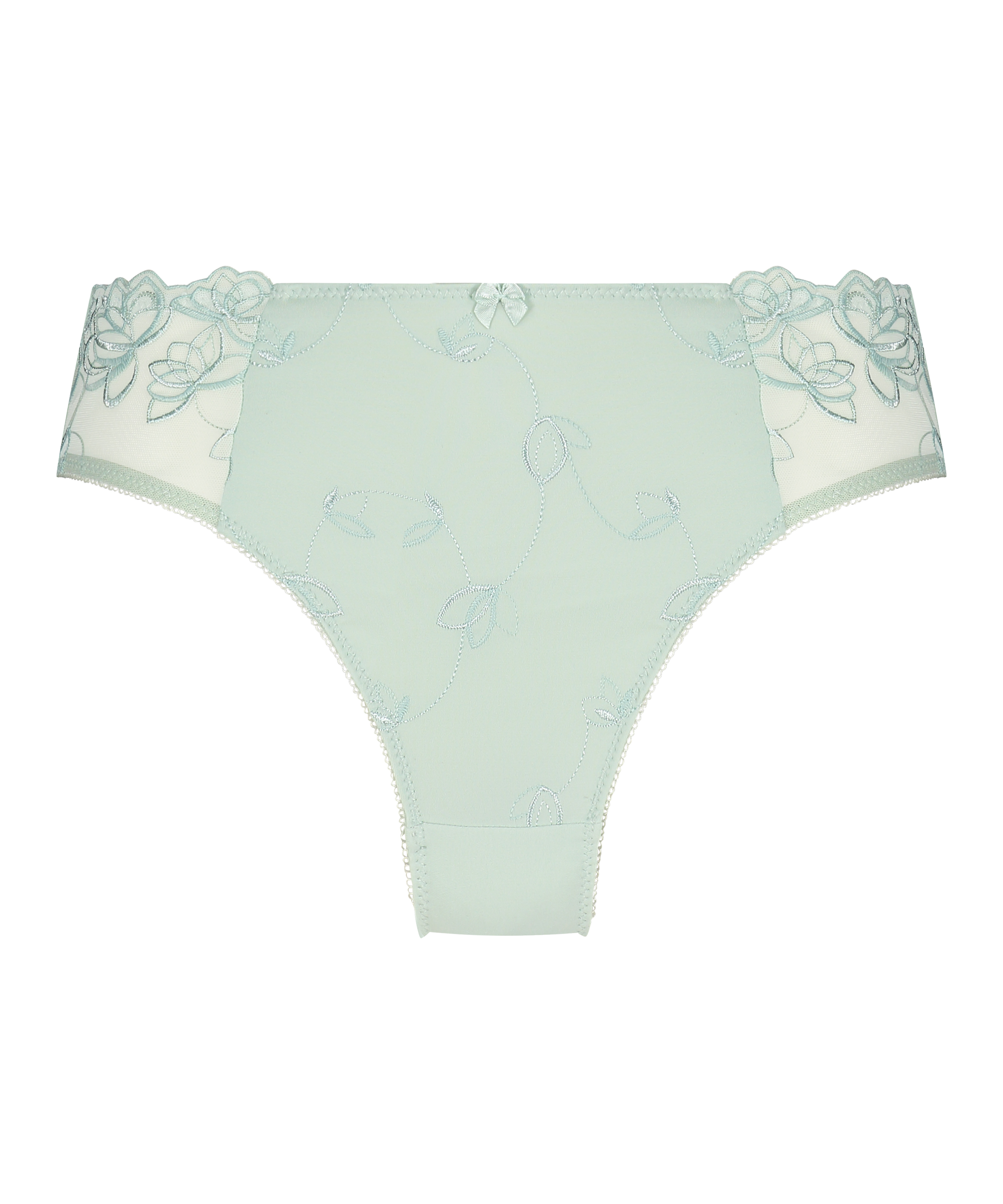 Slip très confortable, réalisé dans une qualité très souple. Modèle décoré de broderie à fleurs et d'un petit nœud devant.