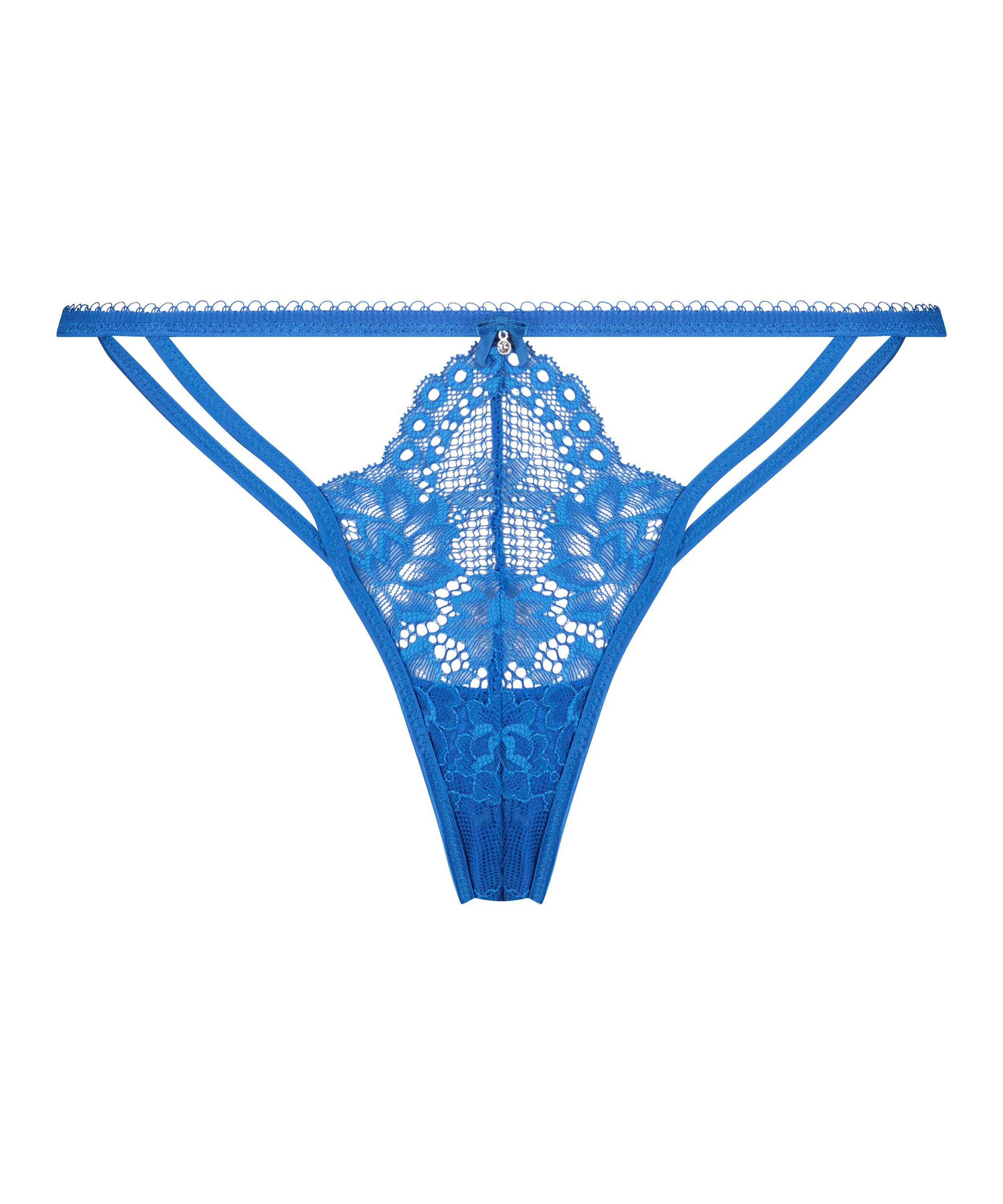 Ein besonders sexy wirkender String mit semitransparenter Spitze und Riemchendetails. Der String ist Teil unserer Private Collection.