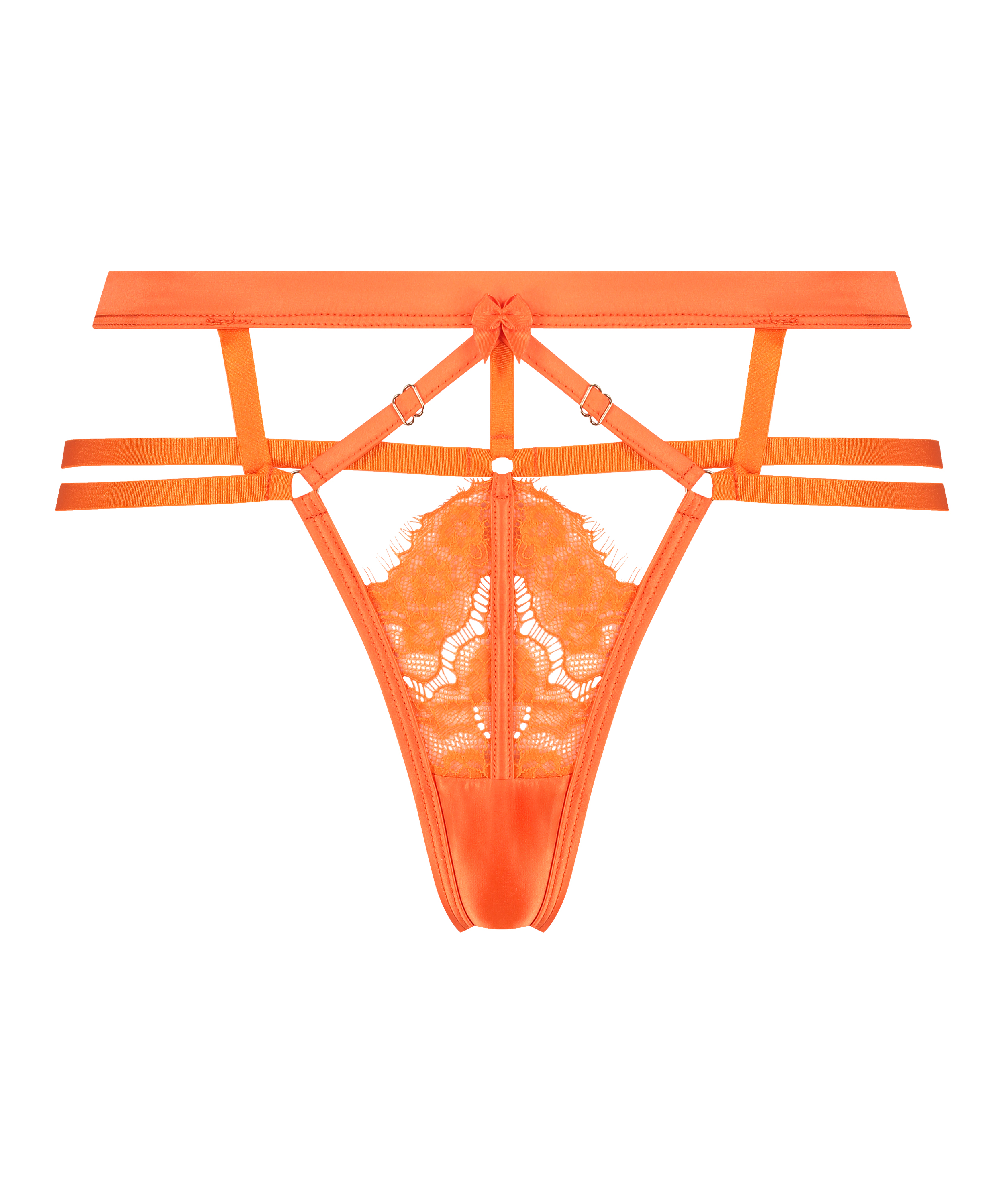 Zaubere mit diesem String einen ultra-femininen, prickelnden Look. Er ist mit raffinierten Riemchen-Details und Spitze ausgeführt; die Vorderseite ist mit einer kleinen, verspielten Schleife versehen. Kombiniere ihn mit den passenden Teilen zu einem kompletten Set. Teil der Private Collection.