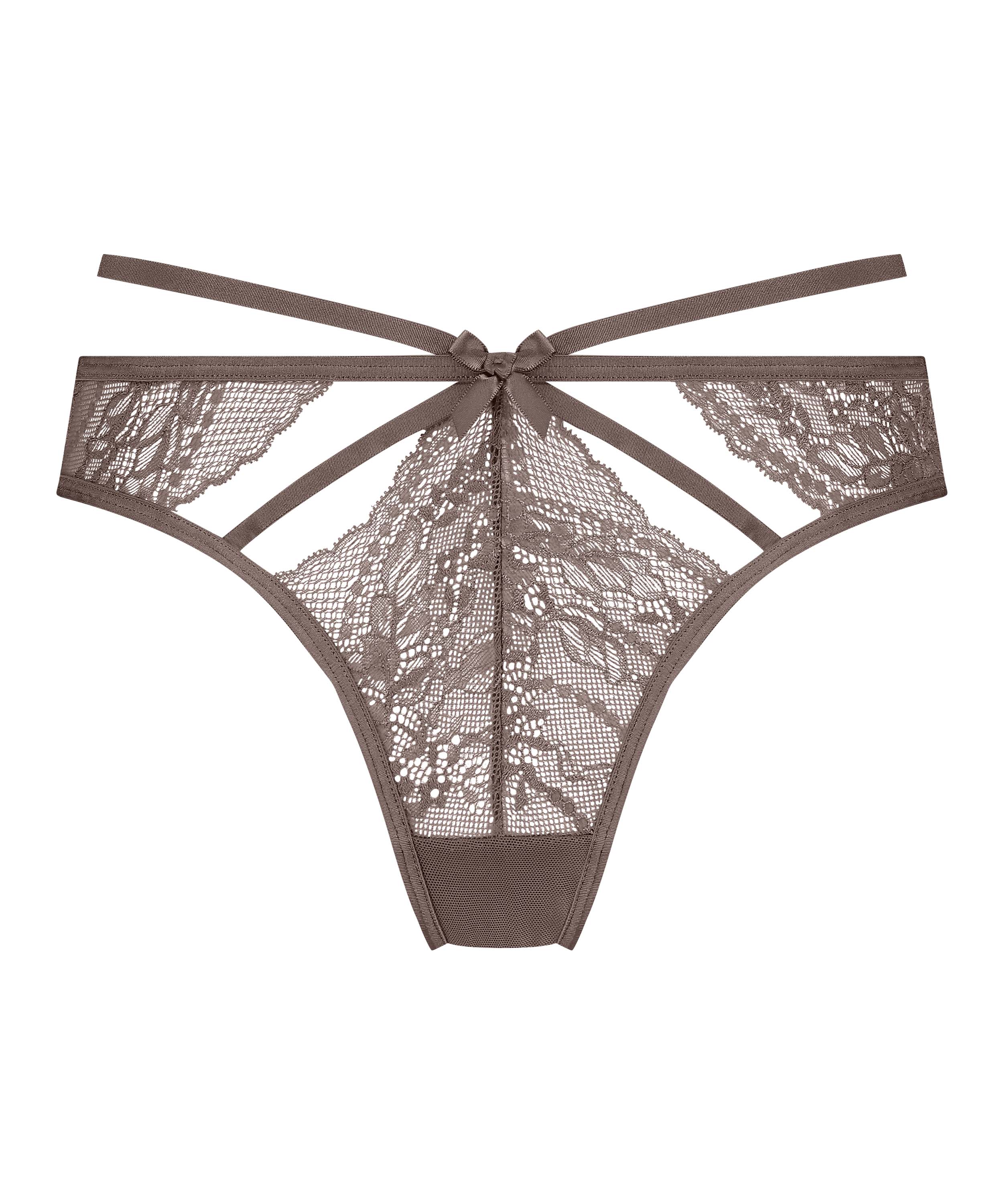 Sentez-vous irrésistible dans ce string ! Le string contient de nombreux détails de dentelle et de découpes. De plus, le slip contient des détails à lanières. Associez-le à un soutien-gorge assorti.