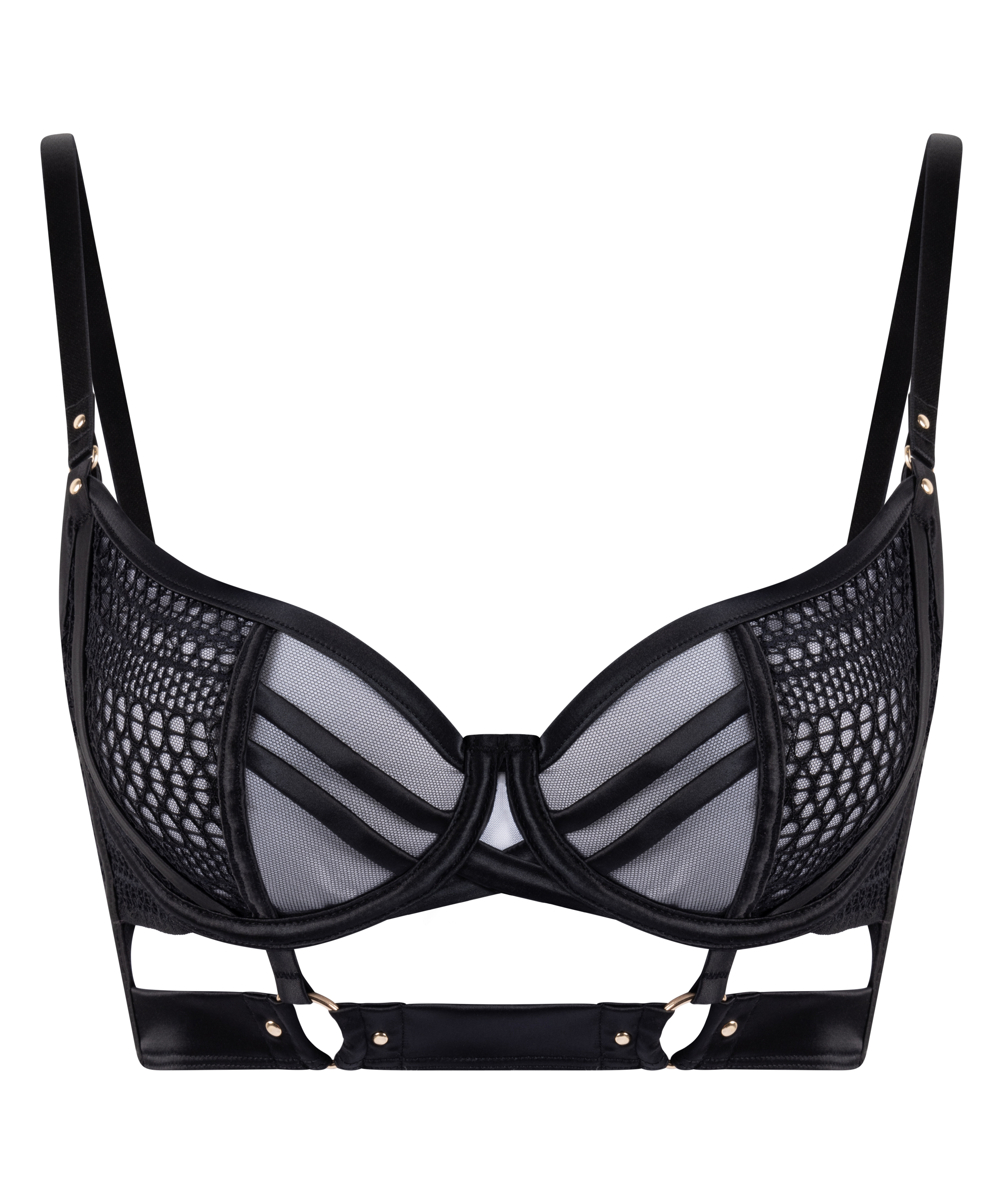 Zeigen Sie sich selbstbewusst mit diesem raffinierten BH, gemacht für Eroberungen. Die Cut-outs und die Riemendetails sorgen für einen gewagten Look. Er hat stützende Cups, die Ihre natürlichen Rundungen betonen.