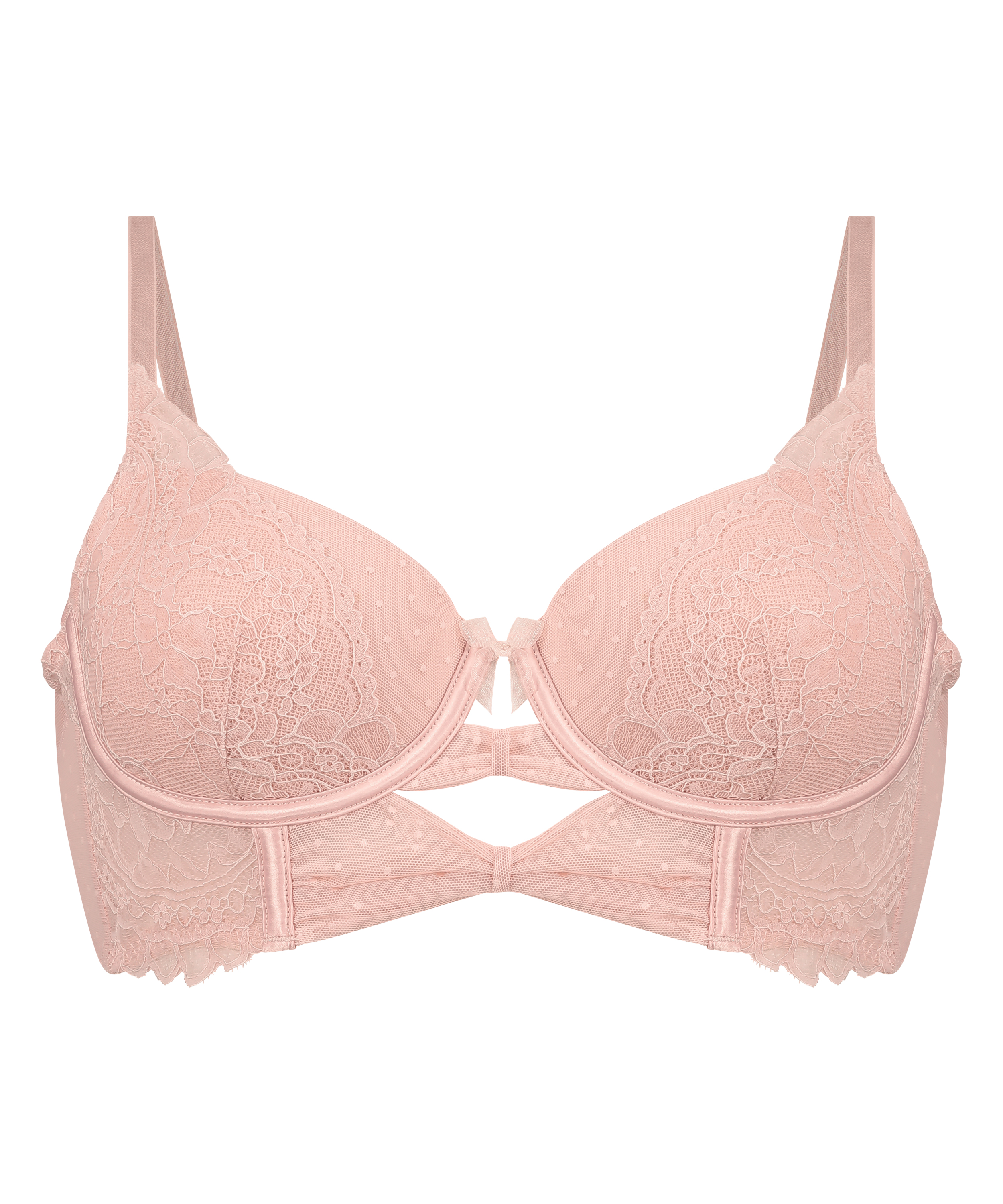 Peppe deine Dessous-Kollektion mit unserem Juliette-BH auf! Die Longline-Form sorgt für eine schmeichelhafte Passform und zusätzlichen Halt, während die Spitze- und Mesh-Details eine romantische Note beisteuern. Die Schleife verleiht dem Modell einen verspielten und femininen Charme. Trage dazu ein passendes Höschen, um den Look abzurunden.