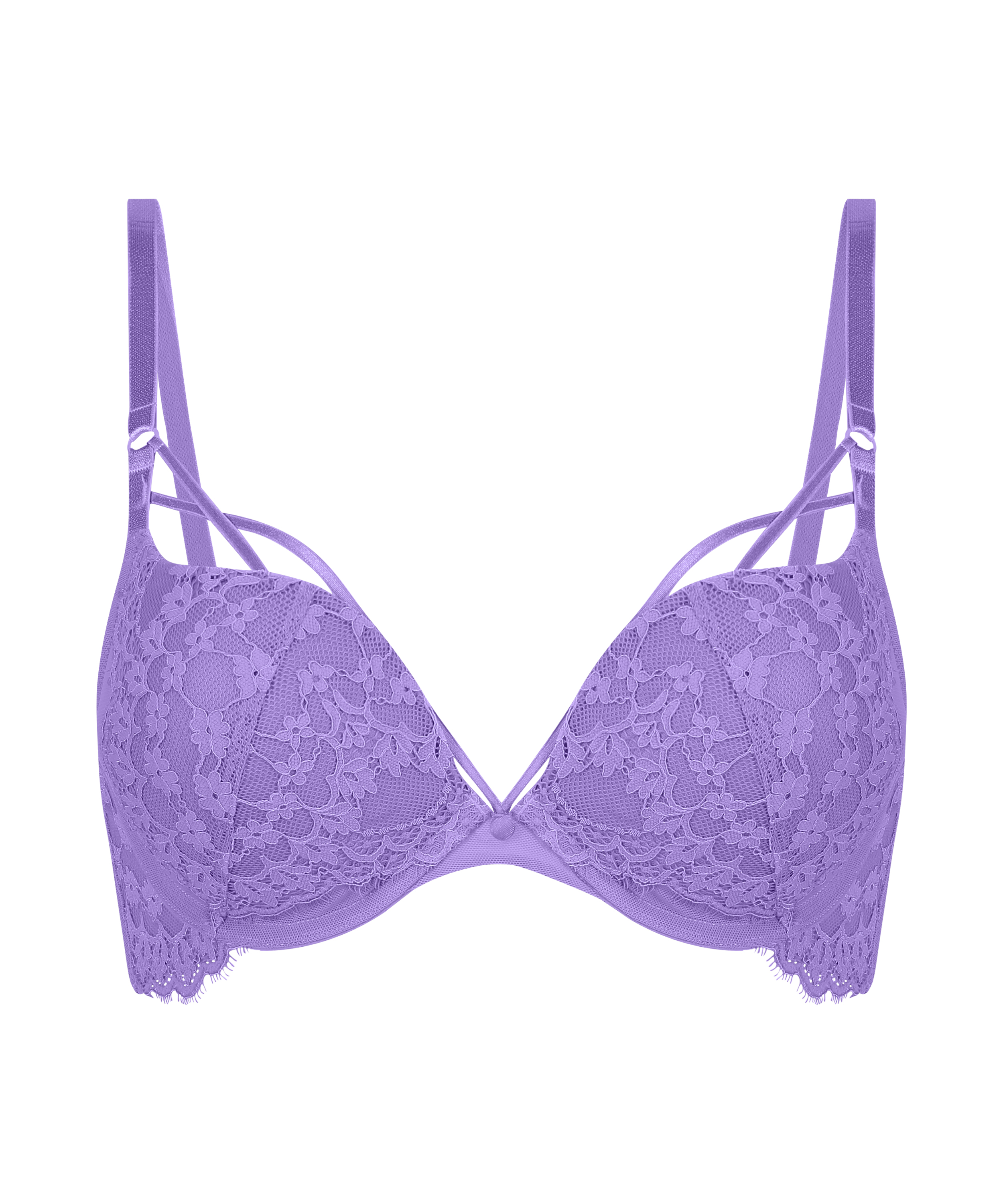 Ce soutien-gorge maximiseur confortable sera votre nouvel allié ! Il arbore des détails ludiques évoquant des lanières sur la poitrine, ainsi que des bonnets à armatures pour plus de confort. Il se pare d'éléments en dentelle romantique en guise de finition. À combiner avec la culotte assortie !