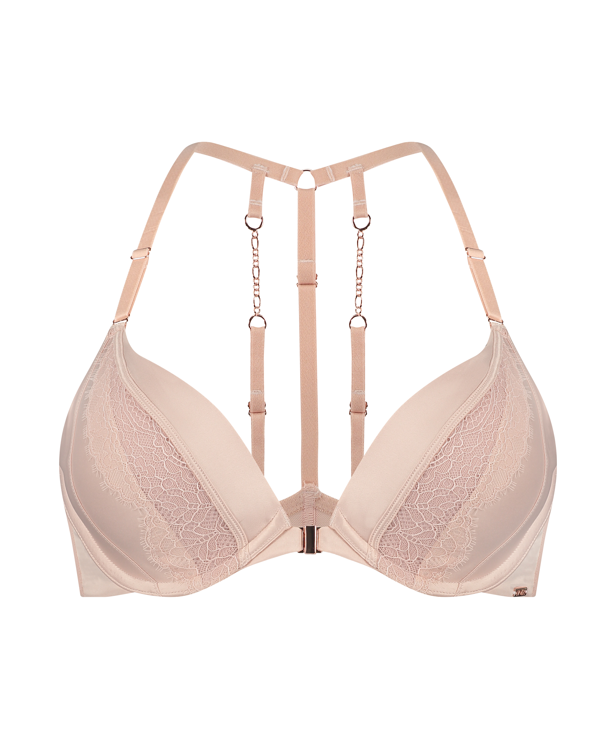 Fühl dich sexy in diesem Push-up-BH! Er hat einen Verschluss an der Vorderseite und verstellbare Riemchendetails an der Rückseite. Die Cups sind mit einem Spitzeneinsatz versehen. Ergänze das Set mit einem der passenden Slips. Teil unserer Noir Collection.