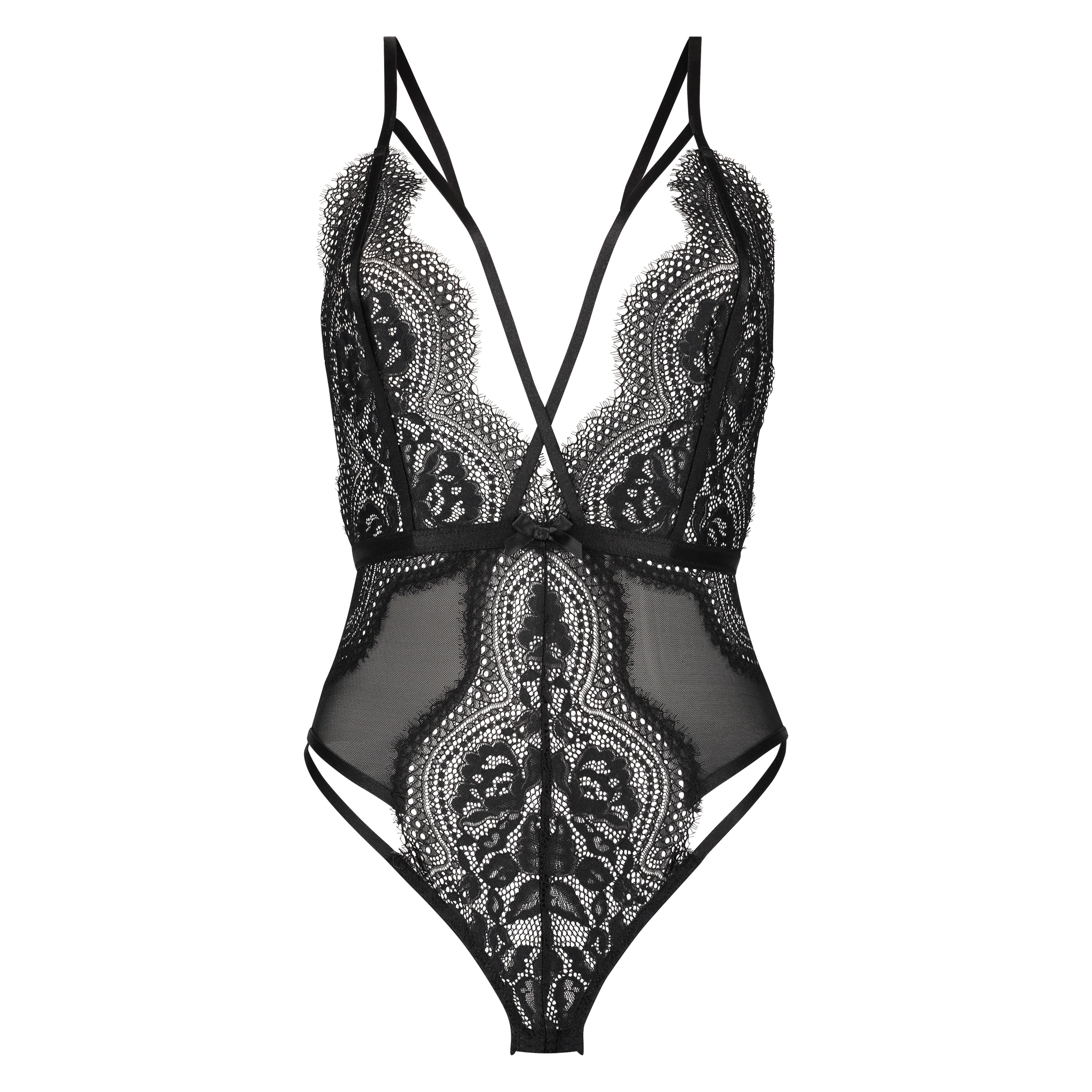 Ce body est fini avec un mélange de tulle et de dentelle, super sexy ! Les détails de lanières et le nœud complètent le body !