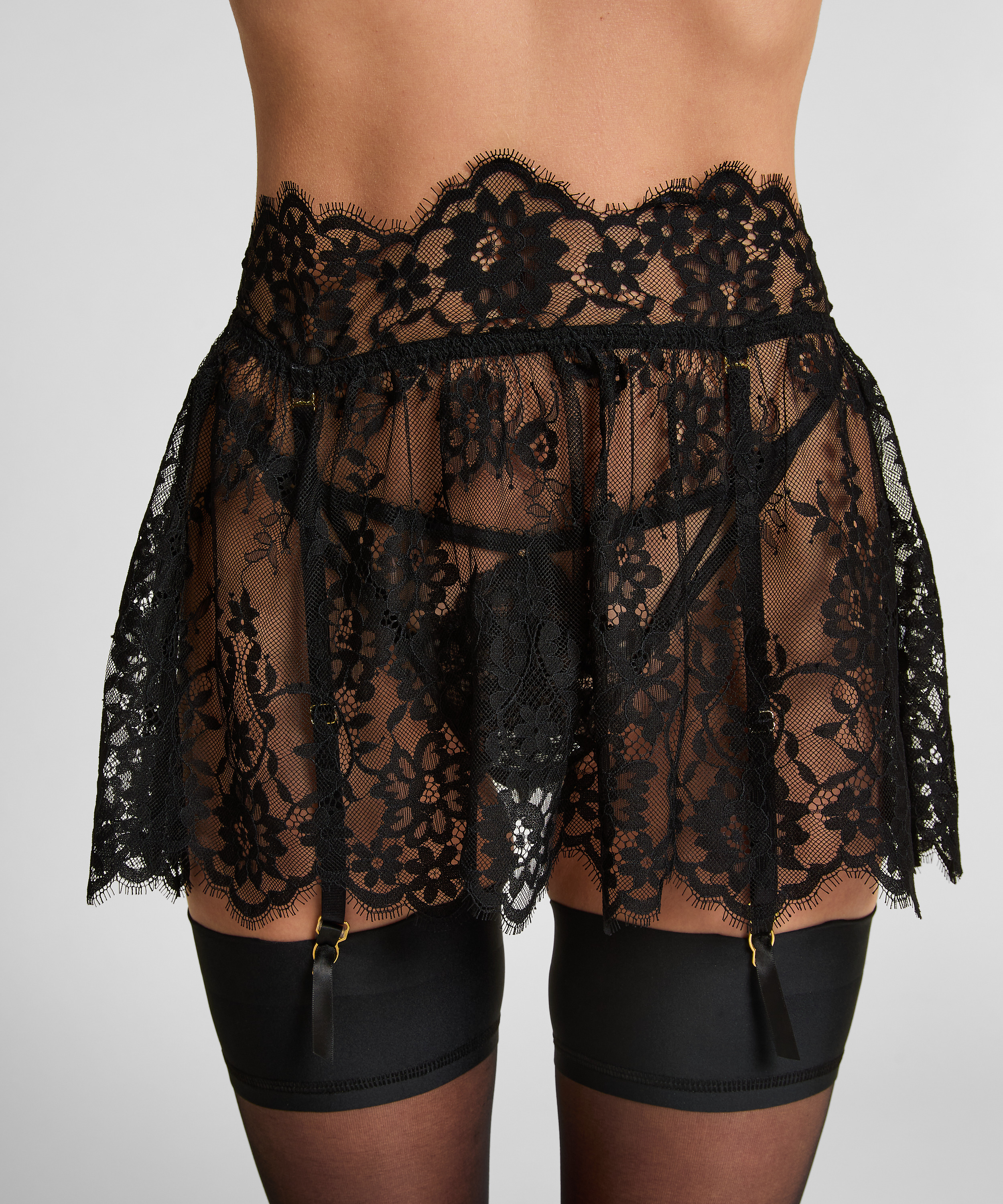 Rendez votre look très sexy avec cette longue bretelle! La bretelle se compose entièrement de dentelle, a une ceinture élastique et peut être attachée à une paire de bas. À combiner avec le haut assorti de la collection Private pour un ensemble complet!