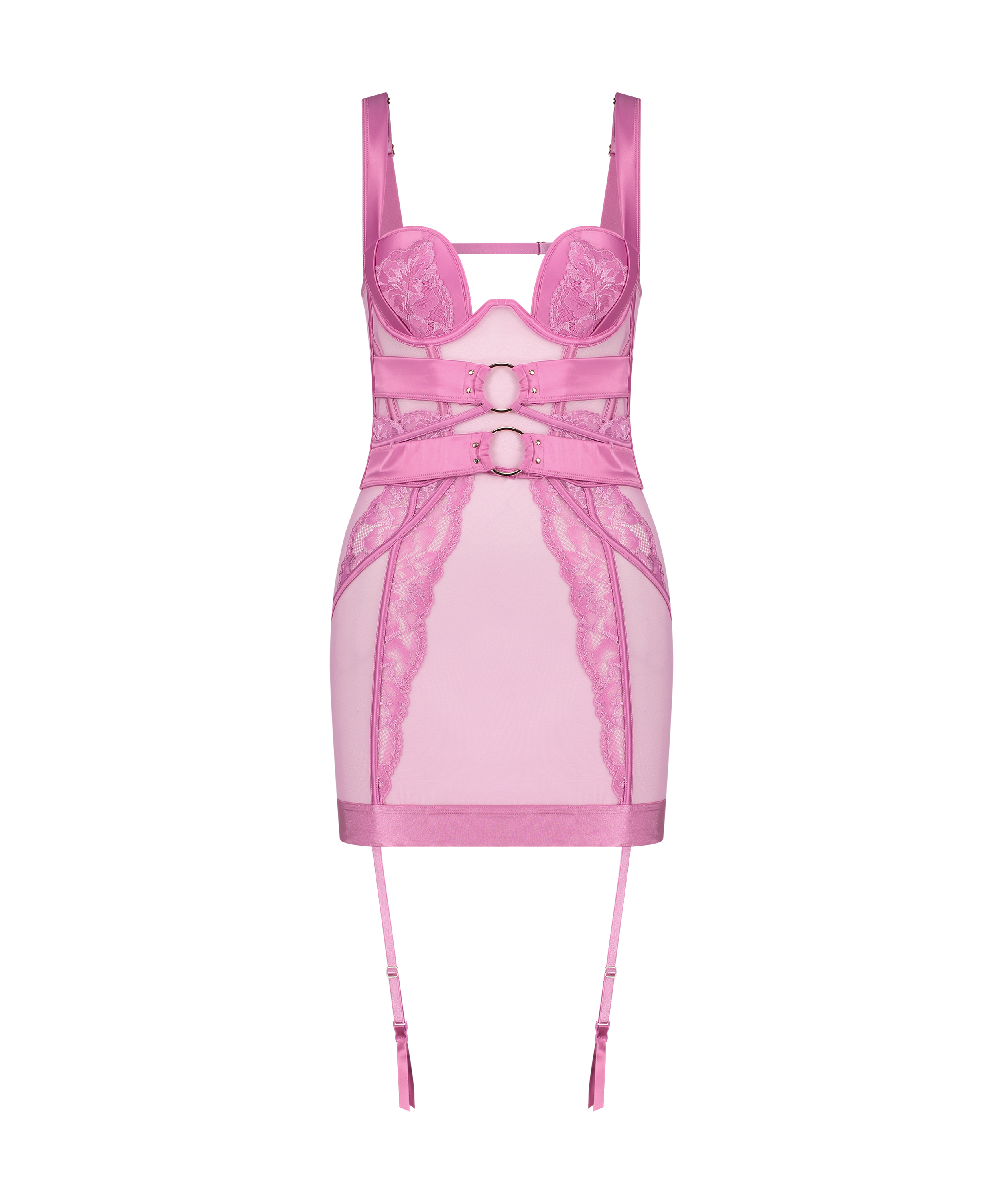 À mi-chemin entre la robe et le bustier, cette nuisette remarquable est une pièce langoureuse qui ne manquera pas de rehausser vos tenues ! Ce modèle est doté d'une armature qui aide à créer une silhouette flatteuse. La finition satinée douce et chic des bretelles ajoute une note de féminité. Des œillets vous permettront de styliser cette nuisette à votre guise. Associez-la à la culotte assortie et à une paire de bas pour un look captivant. Cet article fait partie de la collection Private.