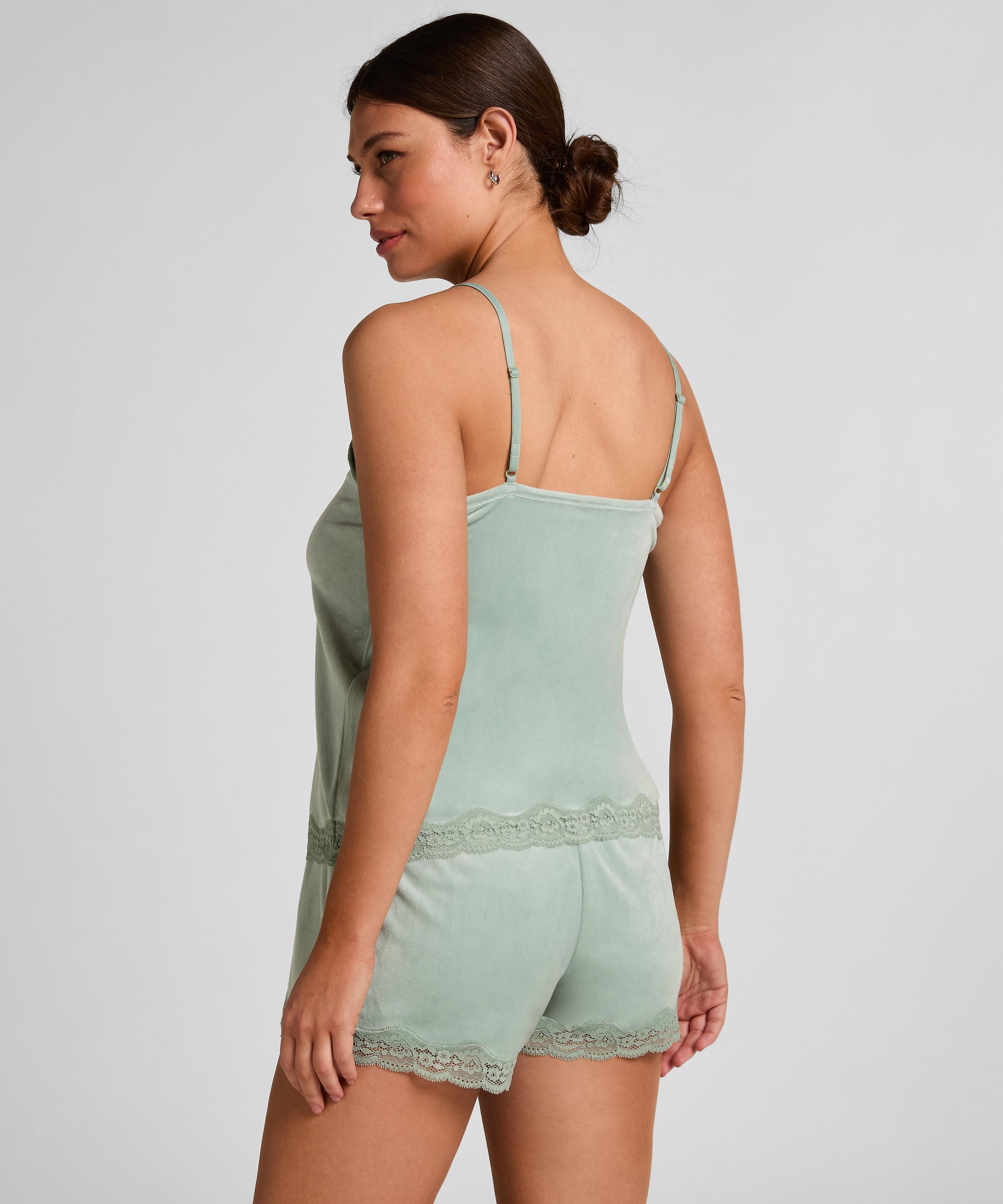 Short en velours à dentelle - Vert