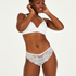 Dieser Brazilian ist semitransparent und mit viel Spitze besetzt. Die kleine Schleife auf der Vorderseite rundet den Brazilian perfekt ab!
