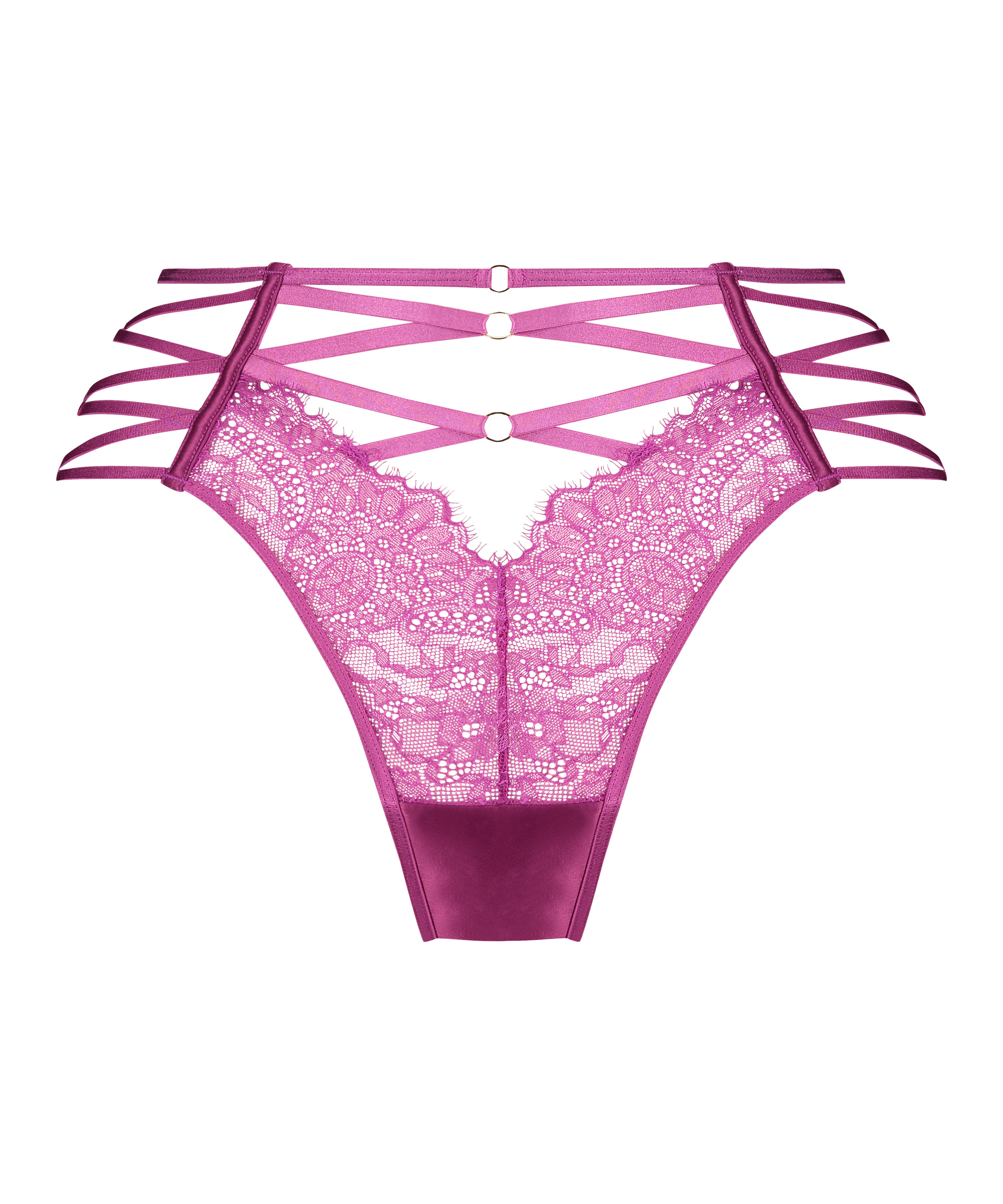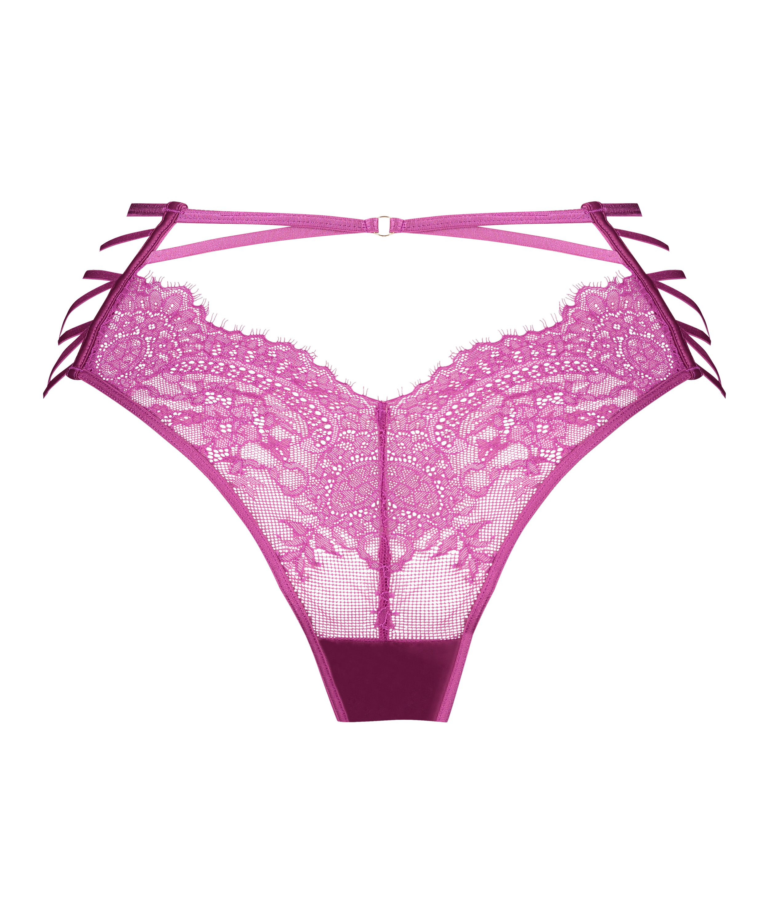 Cédez à la sensualité avec notre superbe slip brésilien ! Ornée de bretelles complexes qui s'enroulent et de détails en dentelle en V sur le devant et dans le dos, cette pièce est aussi séduisante qu'élégante. Ce modèle fait partie de notre collection Private et peut être porté avec le soutien-gorge assorti !