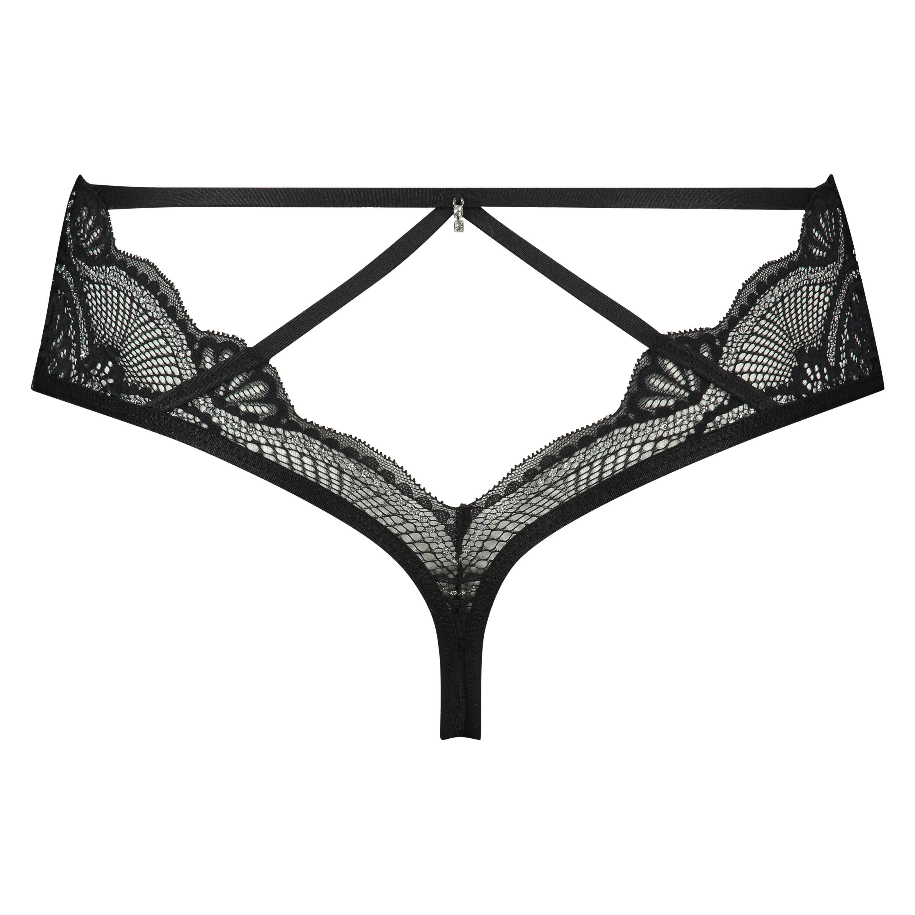 Ce string est parfait pour une soirée passionnante avec votre partenaire! Le string est fini avec une bordure en dentelle avec des strass et des détails à lanières qui font tomber le string plus haut. Associez-le avec le soutien-gorge assorti de la collection Private !