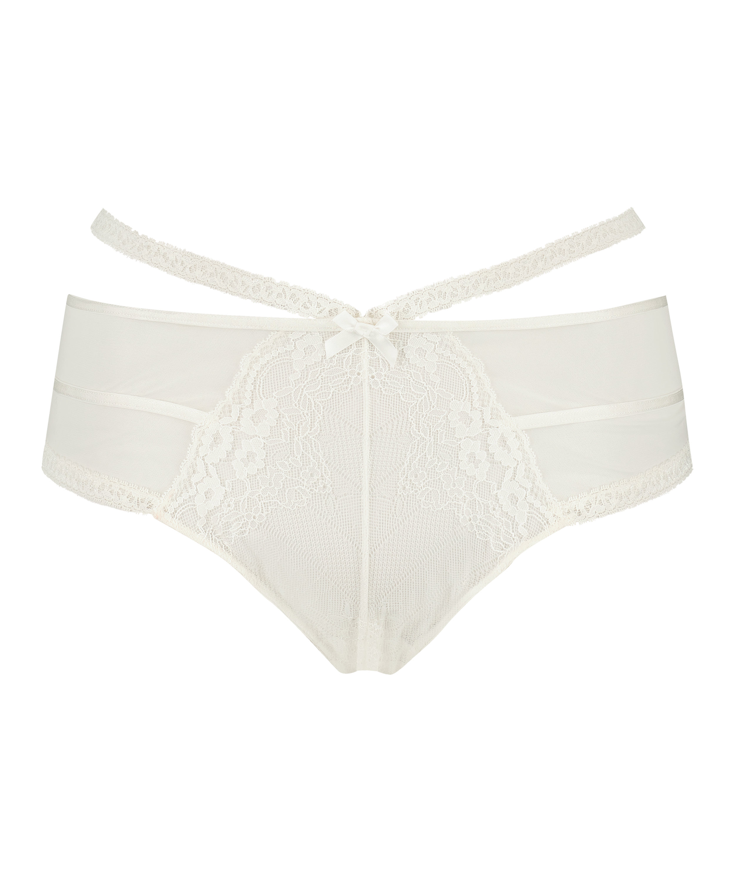 Kurz gesagt, dieser Tanga ist wow! Der Slip ist für das gewisse Sexappeal mit Strappy Details und viel Spitze versehen. Auf der Vorderseite befindet sich eine schöne Schleife. Kombiniere ihn mit einem passenden BH oder Bralette.