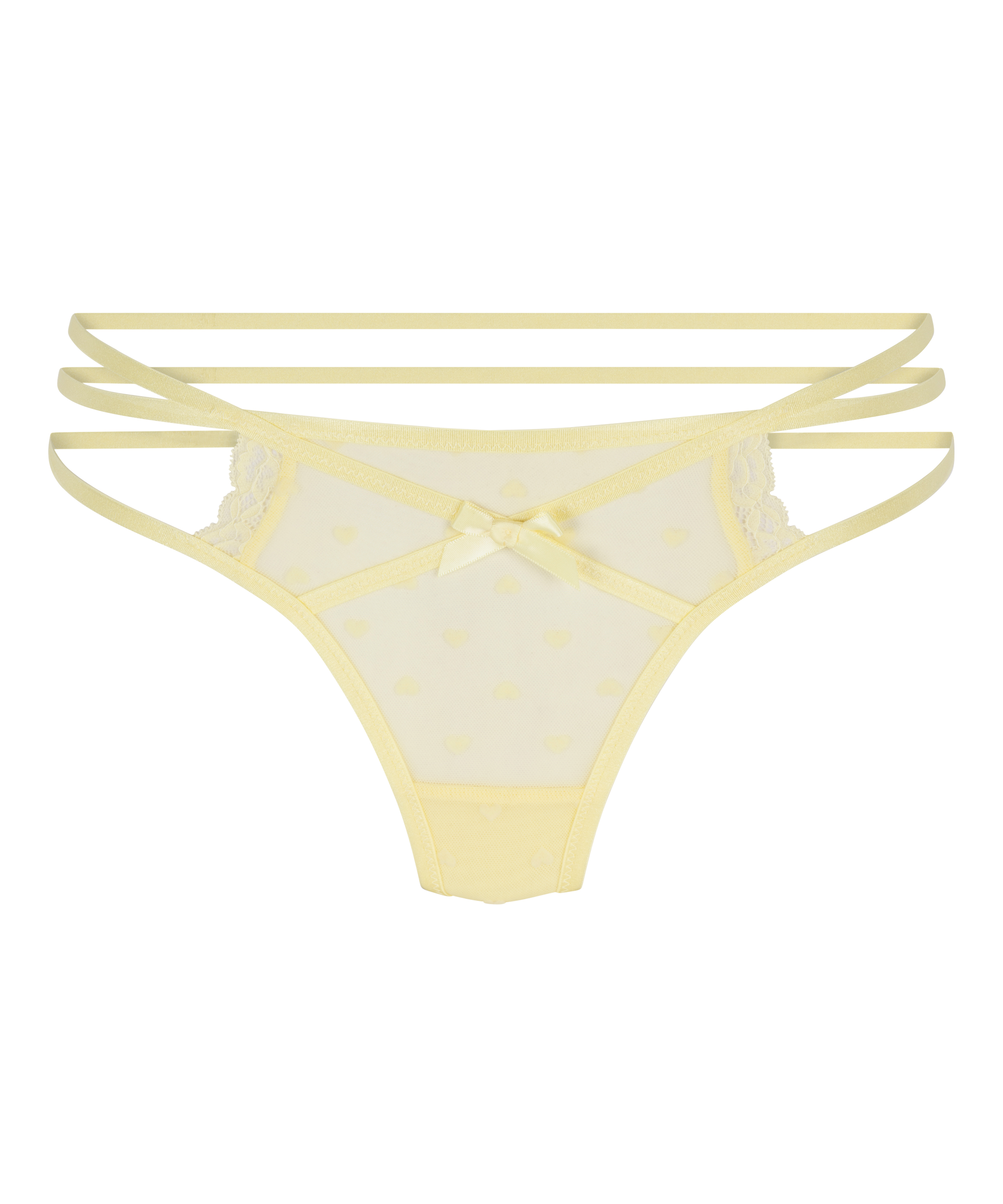 In diesem aparten String fühlst du dich super sexy! Er ist mit viel Spitze und raffinierten Riemchen-Details ausgeführt. Auf seiner Vorderseite ist er mit einer verspielten kleinen Schleife versehen. Kombiniere ihn mit den passenden Artikeln zu einem schönen Set!