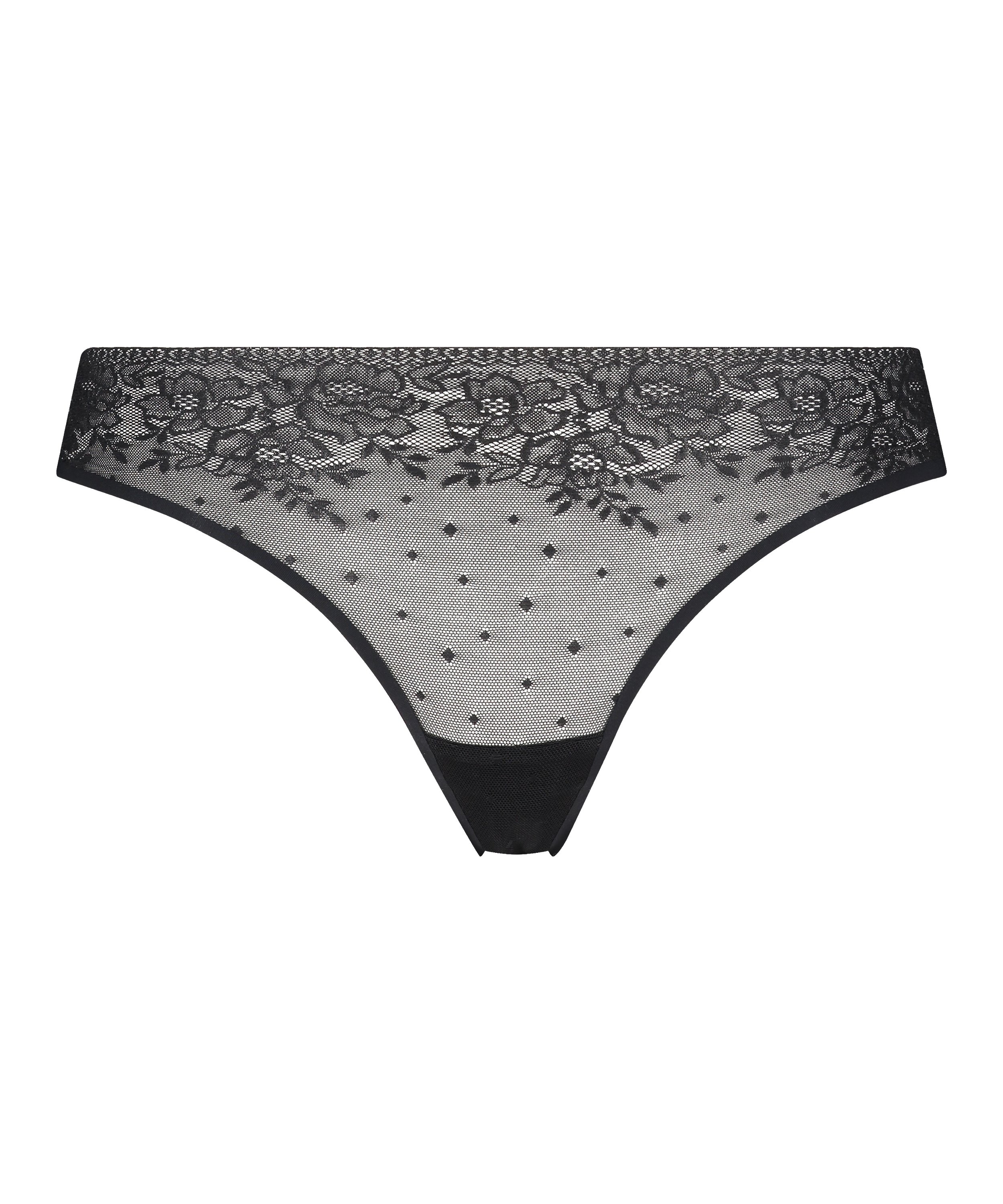 String sans coutures Allover Lace (tout en dentelle) - Noir