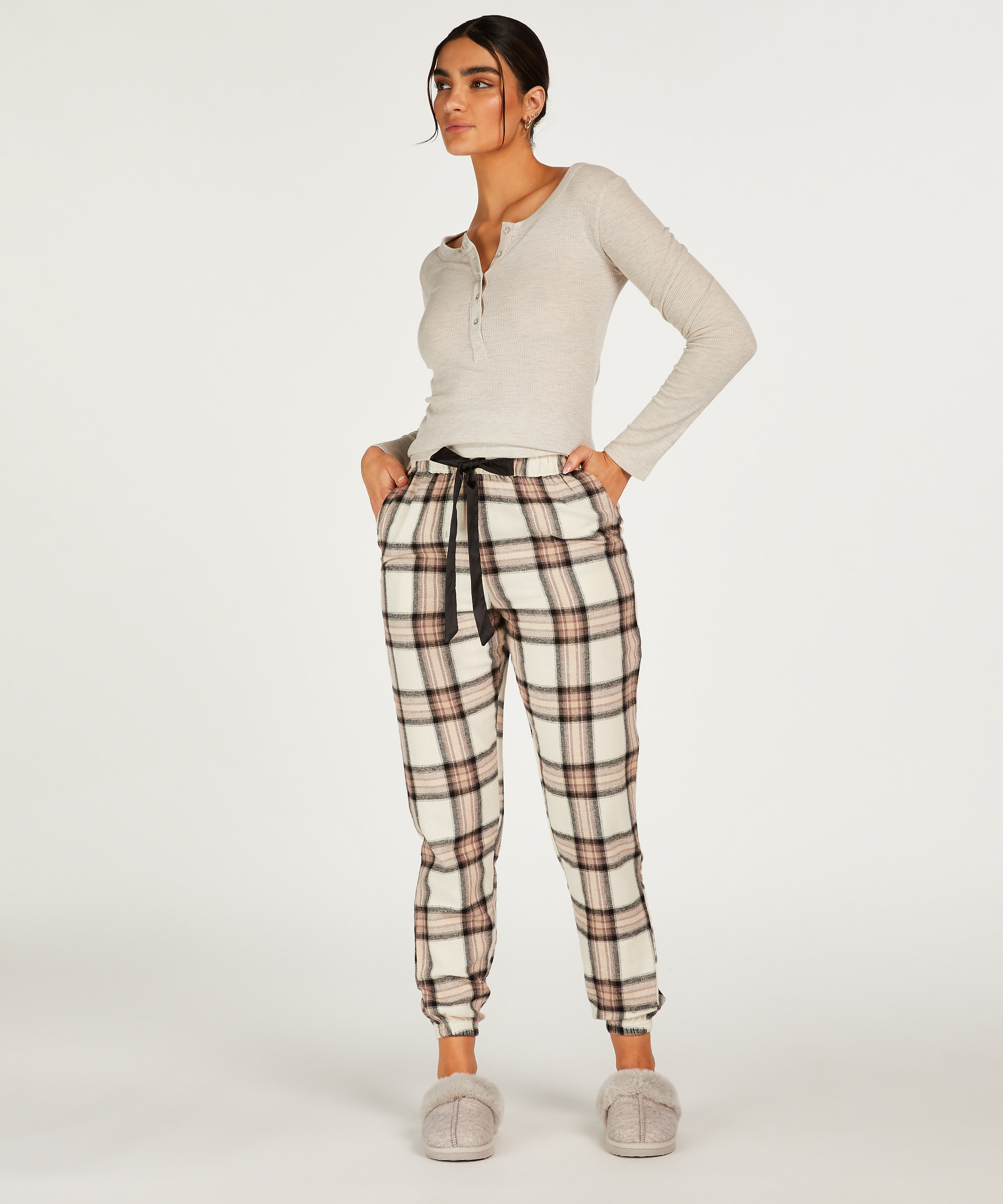 Soyez à l'aise dans ce pantalon de pyjama ! Il a un imprimé à carreaux, des poches latérales et un élastique dans la bande pour un ajustement parfait. Les jambes sont également larges, ce qui les rend confortables. À combiner avec un haut assorti pour parfaire votre ensemble ! Le pantalon est 9 cm plus long que la taille normale et il taille grand. Cela le rend parfait pour les femmes mesurant plus de 1,75 m.